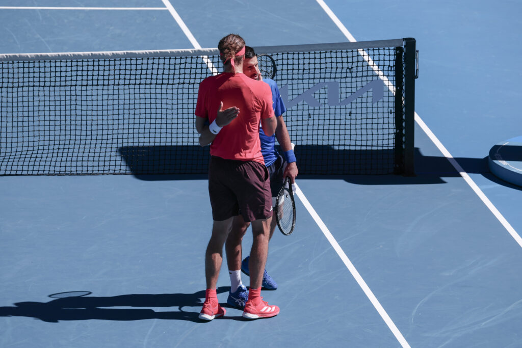 Le N.2 mondial Alexander Zverev s’est qualifié vendredi pour sa 3e finale en Grand Chelem, en bénéficiant de l’abandon de Novak Djokovic (7e) en demi-finales de l’Open d’Australie, et tentera de décrocher son premier titre majeur dimanche contre Jannik Sinner (1er) ou Ben Shelton (20e). . Zverev avec un goût d’inachevé Après 1h20 de combat féroce, le choc des demi-finales entre Alexander Zverev et Novak Djokovic s’est arrêté brutalement à 7-6 (7/5) en faveur de l’Allemand, au grand dam du public de la Rod Laver Arena.Touché à la cuisse gauche depuis son quart de finale remporté mercredi contre Carlos Alcaraz (3e), le champion serbe a en effet été contraint à l’abandon, vaincu par les douleurs issues de cette “déchirure musculaire”, a-t-il ensuite expliqué en conférence de presse.Là où le Djoker était en quête à 37 ans d’un 25e titre record en Grand Chelem, son cadet de dix ans tentera lui de remporter son premier trophée majeur dimanche à Melbourne, après deux échecs contre Dominic Thiem en finale de l’US Open 2020 et face à Carlos Alcaraz en finale du dernier Roland-Garros. S’il y parvient, il sera le premier Allemand à remporter un tournoi du Grand Chelem depuis la victoire de Boris Becker à l’Open d’Australie en 1996 – chez les dames, la dernière victoire allemande est nettement plus récente puisque Angelique Kerber s’est imposée à Wimbledon en 2018.Zverev n’était jusque-là jamais parvenu à battre Djokovic en Grand Chelem, ni à dépasser le stade des demi-finales à Melbourne.”Il mérite de remporter son premier Grand Chelem”, a estimé Novak Djokovic en conférence de presse. “Je le soutiendrai en finale”, a-t-il ajouté.”Je l’ai vu jouer, je me suis entraîné avec lui” en Australie, “j’ai l’impression qu’il adore les conditions de jeu”, avait observé le Serbe avant la demi-finale. “C’est un adversaire extrêmement dangereux pour n’importe quel joueur sur cette surface”, a prévenu Djokovic, qui va rentrer se soigner en Europe. “Vu les circonstances, une demi-finale est un très bon résultat, mais je “veux toujours me battre pour le trophée”, a conclu l’ex-N.1 mondial, qui estime avoir “très bien joué” au cours de ce premier tournoi sous la supervision directe de son ex-rival et nouvel entraîneur Andy Murray.. Sinner grand favoriVainqueur tranquille d’Alex De Minaur (8e) mercredi, Jannik Sinner a rassuré sur son état physique et tennistique après un huitième de finale où il avait lâché un set à Holger Rune (13e) et souffert d’un coup de chaud dans la fournaise de Melbourne.De nouveau programmé en soirée vendredi, comme en quart de finale, l’Italien devrait éviter la surchauffe. Mais le N.1 mondial et tenant du titre s’attend tout de même à un “match difficile” face à Ben Shelton.”C’est l’un des meilleurs serveurs du circuit. Il est très agressif et complet. Il est capable d’aller au filet comme de jouer en fond de court”, a souligné Sinner qui pourrait aligner une vingtième victoire consécutive s’il bat l’Américain, la plus longue série de succès de sa carrière.La tâche s’annonce ardue pour Shelton, invité surprise du dernier carré. A Melbourne, il ne dispute que sa deuxième demi-finale en Grand Chelem, sa meilleure performance dans un tournoi majeur. D’un an son aîné, Sinner atteint ce stade dans un tournoi du Grand Chelem pour la cinquième fois et mène 4-1 dans leurs confrontations.