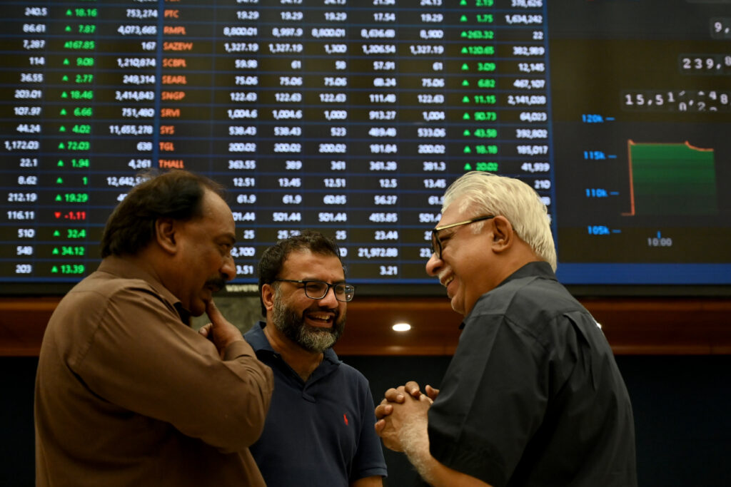 Pakistan stocks surged Monday with the benchmark index nine percent higher after a weekend ceasefire agreement with neighbour India following days of confict. The benchmark KSE-100 Index opened at 117,104.11 points, up 9,929.48 points, or 9.26 percent, prompting an hour-long trading suspension because limits had been reached.”Today’s sharp surge in the stock market stems from a powerful convergence of bullish triggers that have swiftly turned investor sentiment from fear to opportunity,” Sana Tawfiq, head of research at Arif Habib Limited, Pakistan’s largest securities brokerage, told AFP.The jump also comes on the back of the International Monetary Fund (IMF) on Friday approving a Pakistan loan-programme review, unlocking around $1 billion in much-needed funds and greenlighting a new $1.4 billion bailout despite India’s objections.”We are very pleased today that the market has performed extremely well,” Ahmed Chinoy, director of the Pakistan Stock Exchange Limited, told AFP, while celebrating by cutting a cake with brokers.”This positive shift is reinforced by the IMF’s dual approvals, providing both critical funding and international validation of Pakistan’s reform path,” Tawfiq added.US President Donald Trump announced the ceasefire on Saturday after four days of missile, drone and artillery attacks by India and Pakistan which killed at least 60 people.In a series of posts on social media, Trump also pledged to increase trade with both nations.”While optimistic, sustaining momentum requires ceasefire compliance, accelerated reforms, and managing global headwinds like oil prices,” senior economist Sanie Khan told AFP.A policy rate cut by the country’s central bank was also seen as a positive factor boosting equity flows.