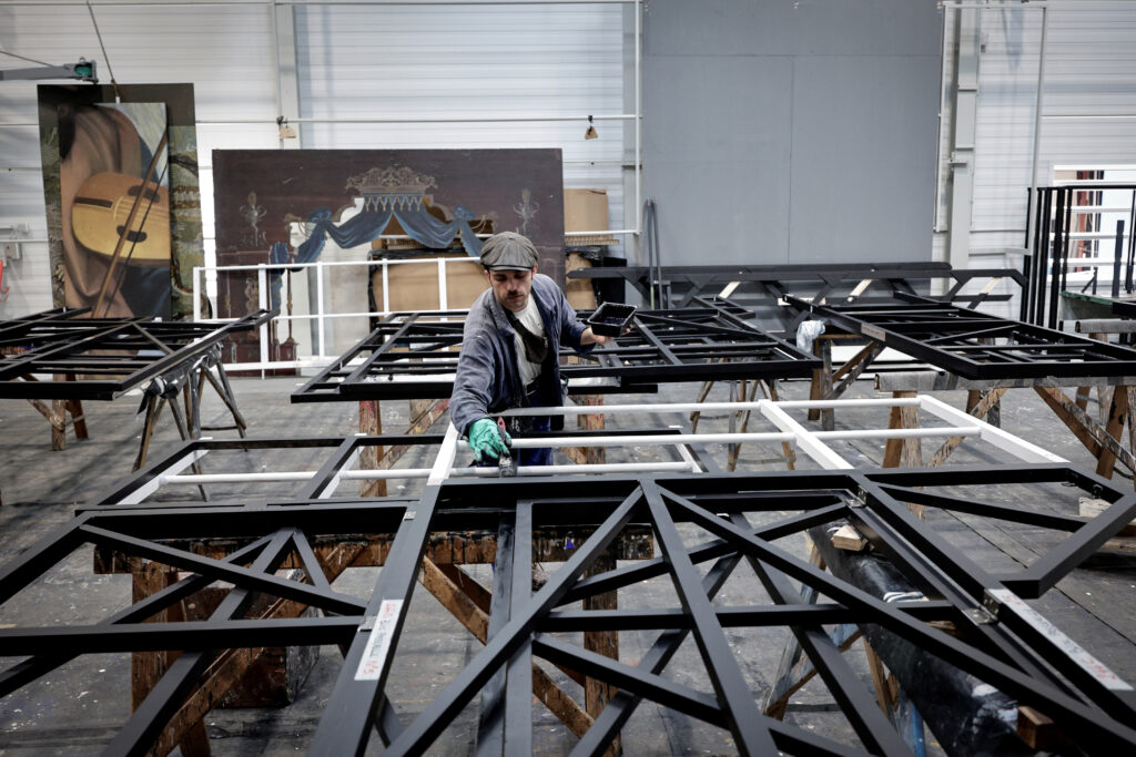 Ils donnent vie depuis des décennies aux rêves des scénographes: à Sarcelles, les ateliers de fabrication des décors des pièces de théâtre de la Comédie-Française, visités par l’AFP, viennent de faire peau neuve, en s’engageant davantage pour l’environnement. On pénètre dans ce lieu par l’un des trois bâtiments d’une rue calme de cette ville située à quelques kilomètres au nord de Paris. Une trentaine d’artisans – machinistes, menuisiers, serruriers, décorateurs – s’affairent sur les décors que le public découvrira la saison prochaine sur les planches des trois salles de la maison de Molière.”Le point de départ d’un décor ? Le bureau d’études”, qui reçoit le projet du scénographe, des maquettes, plans et croquis, explique Benoit Simon, directeur technique de la Comédie-Française. Puis “il passe en construction métallique et bois. Dans le même temps, les tapissiers travaillent sur les toiles qui vont recouvrir le bois ou sur tout élément souple: tissus, velours, voilages”. Ensuite, “le décor passe en décoration – peinture et sculpture – avant que le tout soit monté en salle de montage par les machinistes”, ajoute-t-il.Au total, il se passe un an et demi entre la réception du projet et la première du spectacle, les décors étant transportés sur place, par camions, un mois avant le démarrage, tout comme les décors de répétition – des décors leurres qui simulent les volumes.Parmi les consignes: construire des décors légers. Montage et démontage doivent pouvoir se faire en une heure, afin de respecter le principe d'”alternance” qui prévaut salle Richelieu, explique Benoit Simon: des spectacles différents d’un soir à l’autre, lesquels alternent avec des répétitions l’après-midi.Ce jour de visite, un serrurier assemble des châssis en bois et en aluminium pour une pièce dont on ne peut encore révéler le nom, secret sur la saison oblige… Plus loin, l’énorme statue représentant une chienne, figure essentielle de la pièce “Hécube, pas Hécube” de Tiago Rodrigues (2024), vient d’être posée sur un nouveau plateau à roulettes, afin de pouvoir poursuivre sa tournée à Barcelone. L’un de ses concepteurs, Joseph Lapostolle, adjoint au service décoration, peinture, sculpture, est intarissable sur sa construction.- “Techniques anciennes” -Le sol de la salle de montage est horizontal, ce jour. Quand c’est nécessaire, un système de balançoire permet de reconstituer la pente à 4% du plancher de la salle Richelieu, qui “doit être prise en compte” à toutes les étapes de la construction. Sinon, “nos décors sont penchés et ne tiennent pas correctement”, déroule Benoit Simon.Au fond, une peintre redonne un coup de pinceau sur une (fausse) façade blanche de maison, qui servira à nouveau pour une pièce de la saison prochaine, un recyclage qu’observent aussi d’autres théâtres ou maisons d’opéra ces dernières années. “Les décors d’un +Malade imaginaire+ de 2001 tournent toujours depuis 24 ans”, observe-t-il.Affairées à reproduire les bords d’un faux miroir, les décoratrices Marion Dassonville et Elizabeth Leroy expliquent qu’elles laissent de côté la peinture acrylique pour revenir à “des techniques plus anciennes” et “plus naturelles”, en fabriquant par exemple de la peinture à la caséine.Les lieux servent aussi de stockage d’anciens décors: dans le bâtiment avoisinant, Laurent Levasseur, machiniste, énumère le matériel de chaque pièce rangé dans de grandes cases: “Là, c’est +Cyrano de Bergerac+” désigne-t-il du doigt. “Là, +Scapin+; ici, +Le mariage forcé+; là, +Tartuffe+”. Dans ces bâtiments métalliques qui datent des années 1980, une mise aux normes s’est révélée nécessaire, occasionnant des travaux de rénovation en 2024, pour un montant de 7,5 millions d’euros (hors taxes), dont 5,6 millions financés par le ministère de la Culture.”L’extérieur a été isolé avec des caissons en bois remplis de paille, dans un souci de développement durable et de performance de décarbonation”, décrit Delphine Cedenot, qui a piloté l’organisation du chantier. A l’intérieur, pour respecter le volet sécurité et santé au travail, “le parc des machines-outils a été renouvelé et la totalité du réseau d’aspiration (des poussières) refait”.Prochain projet ? Un parc de 650 panneaux solaires photovoltaïques sur les toits, qui permettrait une autonomie du site en consommation électrique. Mais il faut encore trouver des financements.