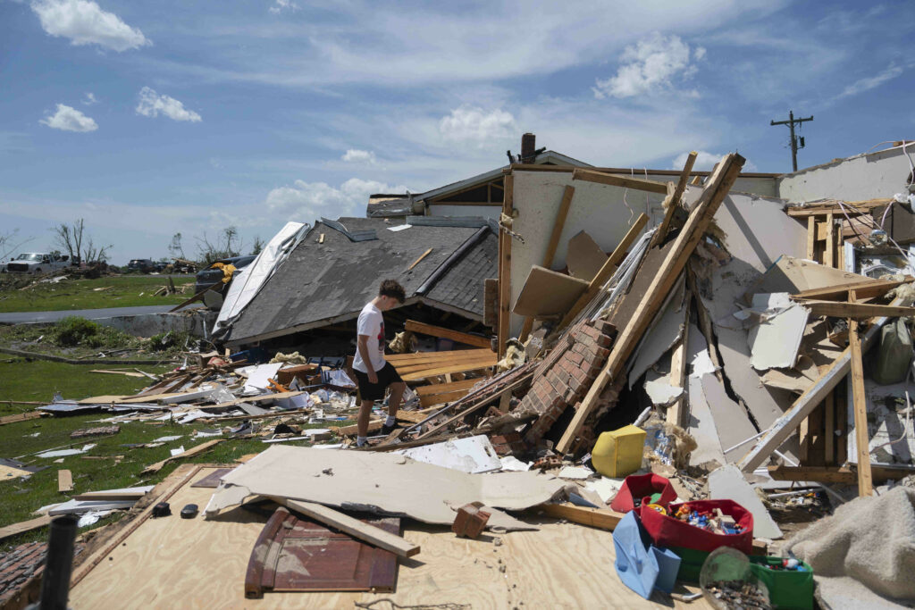 Une série de tempêtes et tornades dans la nuit de vendredi à samedi a tué plus de 25 personnes et provoqué d’importantes destructions dans le Kentucky et le Missouri, dans le centre des Etats-Unis, laissant des dizaines de milliers de personnes sans électricité.Samedi matin, de nombreuses localités de la région, dont la grande ville de Saint-Louis, se sont réveillées avec des dizaines de bâtiments détruits.Dans le Kentucky (centre-est), au moins 18 personnes sont décédées, selon le gouverneur Andy Beshear, dont une majorité dans le seul comté de Laurel, dans l’est pauvre et rural de l’Etat. Sept personnes sont mortes dans le Missouri (centre), et deux autres en Virginie (est).Dans le comté de Laurel, dans la petite ville de London, Jamie Burns allait se coucher, peu avant minuit vendredi soir, quand un texto l’a avertie de l’arrivée d’une tornade, et en regardant par la fenêtre, avec la tempête, “c’était presque aussi lumineux qu’en plein jour”, raconte-t-elle à l’AFP par téléphone.La mère de famille de 38 ans décide rapidement d’aller avec son mari et son fils à quelques centaines de mètres, chez sa soeur, qui “a une maison en brique avec une cave” pour se protéger, “c’était plein de monde”. Car “beaucoup d’entre nous vivons dans des maisons en préfabriqué qui ne sont pas sûres pour les tornades, donc beaucoup de familles étaient là, pour se protéger”.Après le passage de la tempête, ils sont rentrés chez eux. Leur mobile-home était, “Dieu merci”, toujours debout. Mais au réveil samedi matin, ils découvrent la “dévastation”: des bâtiments “qui étaient là depuis plus de 30 ans ont été rasés”, dit encore Jamie Burns à l’AFP, un noeud dans la voix.- “Terrible” dévastation -Dans le Missouri, Mike O’Connell, des services de sécurité publique de l’Etat, a averti que de dangereuses conditions météo étaient à attendre de nouveau dimanche soir dans la région.La maire de Saint-Louis, Cara Spencer, a évoqué lors d’un point presse samedi matin une “dévastation véritablement terrible” dans sa ville de près de 280.000 habitants.Plus de 5.000 bâtiments ont été touchés dans cette tempête, “l’une des pires de l’histoire” de la ville, a-t-elle notamment annoncé.Le gouverneur du Missouri, Mike Kehoe, a déclaré lors de la même conférence de presse que ses services avaient été en contact avec la Maison Blanche pour la tenir informée des développements.Dans un quartier de Saint-Louis, une église a été fortement endommagée selon des images de la chaîne CBS, et les secours continuaient samedi matin de prendre en charge des victimes autour du bâtiment.La Croix-Rouge du Missouri a indiqué avoir mis en place plusieurs centres d’accueil pour les sinistrés.- Coupes budgétaires -Plus de 110.000 foyers et commerces du Kentucky et du Missouri étaient toujours sans électricité à 22H30 GMT, selon le site spécialisé poweroutage.us, marquant une amélioration par rapport au début de journée.En 2024, les accidents provoqués par des tornades ont fait 54 morts aux Etats-Unis, selon l’Agence américaine d’observation océanique et atmosphérique (NOAA).A la demande de l’administration Trump, la NOAA a récemment dû se séparer d’environ 20% de ses effectifs, et la Maison Blanche veut également effectuer des coupes massives dans le budget de fonctionnement de cette agence, qui chapeaute les services météo du pays.Les manques d’effectifs ont forcé certains bureaux locaux à cesser d’opérer 24h/24 et sept jours sur sept pour leur veille météorologique, a rapporté mercredi le Washington Post.Ancien chef de la NOAA, Rick Spinrad s’était alarmé mi-mars dans un entretien à l’AFP de l’impact des licenciements sur les prévisions météorologiques.”Nous entrons dans la saison des tornades dans le centre et le sud-est des Etats-Unis. A mesure que nous perdons des techniciens, entretenir et faire fonctionner des satellites et des radars (permettant de prédire leur apparition) devient plus compliqué”, avait-il mis en garde.