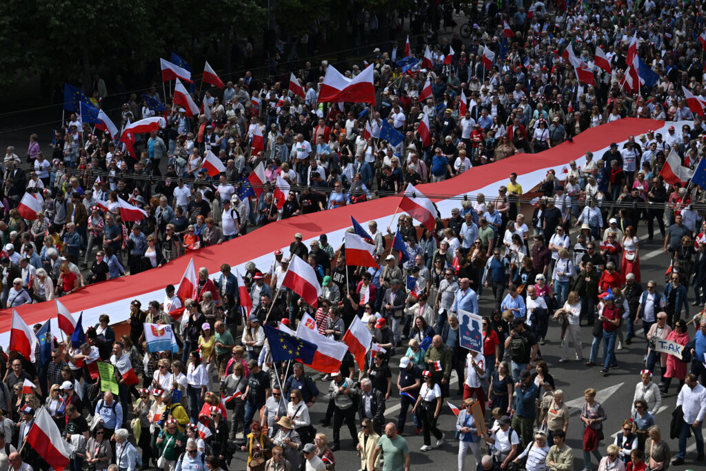 Des dizaines de milliers de personnes sont descendues dans la rue dimanche à Varsovie à la faveur de deux grandes manifestations rivales avant le second tour de l’élection présidentielle dimanche prochain qui oppose un candidat pro-européen à un nationaliste.Une “grande marche des patriotes” a convergé vers la place de la Constitution, avec le maire pro-UE de la capitale, Rafal Trzaskowski, 53 ans, soutenu par le gouvernement centriste de Donald Tusk et qui est arrivé en tête au premier tour.”Ces élections sont l’occasion de construire, de créer et non de détruire”, a-t-il lancé à ses partisans.La “marche pour la Pologne” de l’historien nationaliste Karol Nawrocki, 42 ans, devait elle se terminer sur la place du Château dans la vieille ville de Varsovie, les manifestants scandant des chants patriotiques ou religieux et brandissant notamment des pancartes demandant l’arrêt de l’immigration.”Le changement arrive. Nous allons gagner!”, a assuré M. Nawrocki.Selon ses organisateurs, la marche du candidat nationaliste a réuni environ 200.000 personnes, tandis que, selon le Premier ministre Donald Tusk, les pro-Trzaskowski étaient 500.000.Des chiffres toutefois largement nuancés par le site polonais Onet, selon lequel le rassemblement de M. Nawrocki à réuni 70.000 personnes, contre 160.000 pour celui de M. Trzaskowski.Ce dernier a viré en tête d’un cheveu dimanche dernier au premier tour de la présidentielle, obtenant 31% contre 30% pour M. Nawrocki. Pour le deuxième tour, les sondages prévoient une égalité parfaite, avec les deux candidats à 46,3%.La victoire de M. Trzaskowski permettrait de mettre fin à une cohabitation difficile du gouvernement pro-européen du Premier ministre Donald Tusk avec le chef de l’Etat sortant Andrzej Duda, alors que le succès de son adversaire nationaliste pourrait la compliquer davantage.Une victoire de M. Nawrocki, un partisan du président américain Donald Trump, pourrait aussi ébranler le soutien indéfectible de la Pologne à l’Ukraine voisine : il s’oppose en effet à l’adhésion de Kiev à l’Otan et a dénoncé les avantages accordés au million de réfugiés ukrainiens en Pologne, pays d’Europe centrale de 38 millions d’habitants.”Je suis polonais et donc je vote pour un candidat qui garantira notre avenir et agira comme un contrepoids au gouvernement actuel”, explique Piotr Slaby, employé dans le secteur secteur financier à Przemysl (sud-est) et venu participer à la “marche pour la Pologne”.”Nous avons un gouvernement cosmopolite. Il veut introduire l’euro et nous allons perdre notre souveraineté”, a renchéri Piotr Nowak, technicien de 41 ans, qui habite Varsovie.De nombreux drapeaux de l’UE et LGBTQ flottaient au dessus de la “grande marche des patriotes” de M. Trzaskowski.Olivia, une étudiante de 20 ans qui préfère ne pas donner son nom de famille, dit soutenir M. Trzaskowski “avant tout parce qu’il veut protéger les personnes LGBTQ et les droits des femmes sur la question de l’avortement”.Kurnik Irek, un homme d’affaires de 52 ans, a déclaré qu’un vote pour M. Trzaskowski était “le seul moyen d’aller vers l’Europe” plutôt que la Russie.