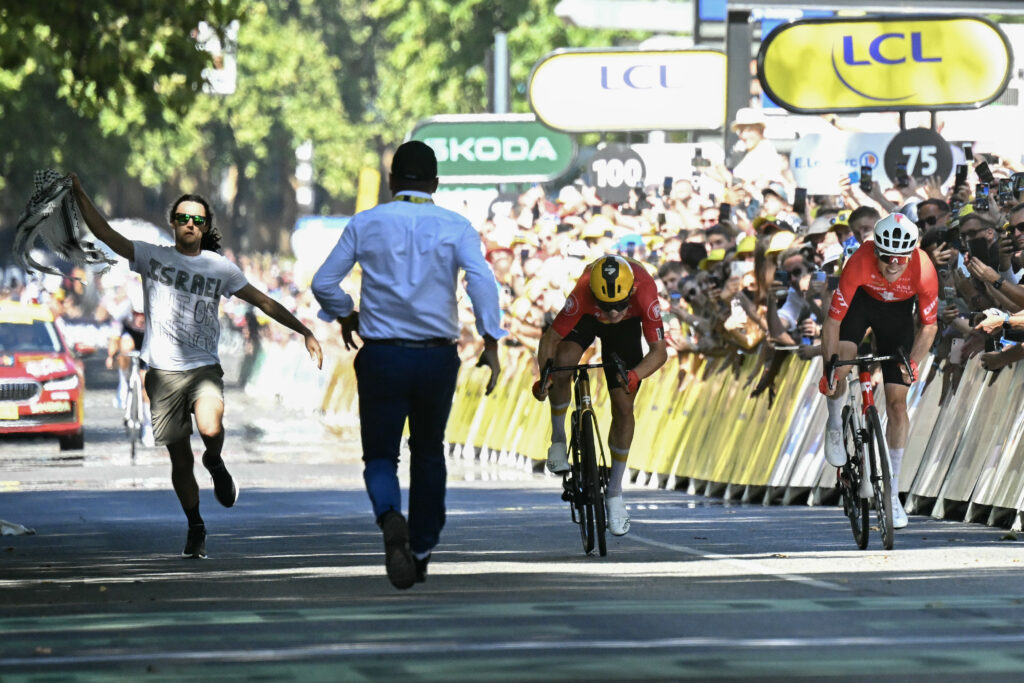 A protestor wearing a t-shirt reading “Israel out of the Tour” was arrested on Wednesday after running onto the final straight of the Tour de France 11th stage.The protestor, who was also holding a Palestinian keffiyeh scarf, got past security barriers and ran towards the finish line in Toulouse as Norway’s Jonas Abrahamsen won a sprint finale.The man was intercepted by a race staff member and arrested, the local prefecture said.Several police officers have been assigned to protecting the Israel-Premier Tech team during the Tour. The team was set up by Israeli-Canadian billionaire Sylvan Adams, but there are no Israeli riders in this year’s race.With the Gaza war causing international controversy, last year the team said it had asked its riders not to wear jerseys with any reference to Israel while out training as a precaution.The Gaza war sparked by Hamas’s attack on Israel on October 7, 2023, which resulted in the deaths of 1,219 people, most of them civilians, according to an AFP tally based on official figures. Israel’s retaliatory campaign in Gaza has killed 58,573 Palestinians, mostly civilians, according to the health ministry in the Hamas-run territory.