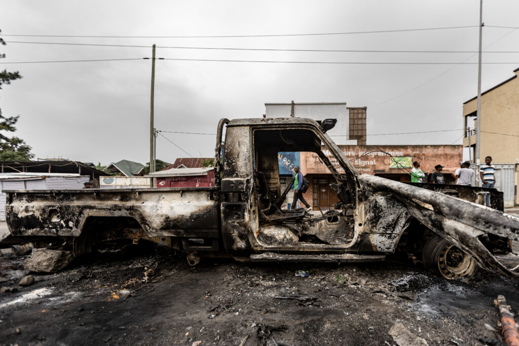 D’intenses combats ont laissé des rues jonchées de cadavres à Goma, principale ville de l’est de la RDC, assiégée par le groupe armé antigouvernemental M23 et les troupes rwandaises qui se sont emparés mardi de l’aéroport. A Kinshasa, des manifestants en colère ont attaqué plusieurs ambassades, dont celles du Rwanda accusé par les autorités congolaises de leur avoir “déclaré la guerre”, du Kenya et aussi de la France, de la Belgique et des Etats-Unis, des pays critiqués pour leur inaction dans cette crise.Sur le plan diplomatique, le Conseil de Paix et de Sécurité de l’Union africaine a “condamné les violences du M23” et l’a exhorté “à déposer les armes”, mais sans citer nommément le Rwanda, alors qu’à New York une nouvelle réunion du Conseil de sécurité des Nations Unies sur la RDC doit encore avoir lieu.Le M23 et les soldats rwandais sont entrés dimanche soir dans Goma, cité de plus d’un million d’habitants et presque autant de déplacés, coincée entre le lac Kivu et la frontière rwandaise, au terme d’une progression éclair de quelques semaines lancée après l’échec mi-décembre d’une médiation RDC-Rwanda sous l’égide de l’Angola.Le M23 et l’armée rwandaise ont pris mardi le contrôle de l’aéroport, a annoncé à l’AFP une source sécuritaire, renforçant l’impression qu’ils pourraient s’emparer prochainement de la totalité de la ville. Le gouvernorat, siège de l’autorité provinciale, est également occupé, a constaté un journaliste de l’AFP. “Goma s’apprête à tomber”, avait prévenu dès lundi le ministre français des Affaires étrangères Jean-Noël Barrot.”Ils ont pris le contrôle de l’aéroport, des cadres du M23 sont là”, et “plus de 1.200 militaires congolais se sont rendus et sont cantonnés dans une base de la Monusco (mission de l’ONU en RDC) à l’aéroport”, a indiqué cette source.De nombreux cadavres de soldats ou de civils étaient visibles dans les rues, où des habitants pressaient le pas vers les entrepôts de denrées alimentaires et produits de première nécessité, ont constaté des journalistes de l’AFP.L’est de la RDC est secoué depuis plus de 30 ans par des conflits exacerbés depuis le génocide rwandais de 1994. La RDC accuse notamment le Rwanda de vouloir y faire main basse sur ses nombreuses richesses naturelles, ce que Kigali dément. Le pouvoir rwandais dénonce également la présence côté congolais de groupe qui lui sont hostiles.- “Les bombes tombaient” -Après l’entrée dans la ville du M23 et des forces rwandaises dimanche soir, “les bombes tombaient et tuaient des gens partout”, a raconté à l’AFP Destin Jamaica Kela, un étudiant de 24 ans qui avec sa famille a fui Goma et trouvé refuge dans un centre de transit situé de l’autre côté de la frontière rwandaise, près de Gisenyi.Ils ont pris la route et sont passés au Rwanda, comme près de 1.200 Congolais recensés selon Kigali, après avoir vu la maison de leurs voisins détruite par une bombe, qui a “tué toute la famille”.Le bureau des Affaires humanitaires de l’ONU (Ocha) a déploré “l’afflux massif de blessés par balles et par munitions explosives dans les structures soutenues par le CICR, notamment l’hôpital CBCA Ndosho à Goma”.Des personnels de l’ONU ont observé “des tirs nourris d’armes légères et de mortiers à travers la ville” et “de nombreux cadavres dans les rues”, a déclaré le porte-parole de l’Ocha, Jens Laerke.Viols, pillages, pénuries alimentaire, risque de dissémination du virus Ebola, du choléra ou de la rougeole… les combats à Goma ont bien d’autres conséquences dévastatrices, ont souligné l’ONU et le Comité international de la Croix-Rouge (CICR).L’armée sud-africaine a par ailleurs annoncé quatre soldats supplémentaires tués en RDC, portant à 17 les membres de la force régionale d’Afrique australe (SAMIRDC) et de la mission onusienne (Monusco) morts ces derniers jours dans des combats contre le M23.- “Ils nous ont tout volé” -La Commission européenne a annoncé mardi une aide humanitaire d’urgence de 60 millions d’euros en faveur des populations déplacées en RDC.L’Allemagne a elle mis mardi sur pause des discussions avec Kigali sur son aide au développement, exigeant du pays africain et de ses alliés du M23 qu’ils retirent leurs forces de l’est de la République démocratique du Congo (RDC).Mardi matin, des habitants, après trois jours cloîtrés chez eux, ont bravé la peur et sont descendus vers le lac pour puiser de l’eau, ont constaté des journalistes de l’AFP. Plusieurs disent avoir été braqués par des miliciens ou militaires congolais en débandade: “Ils nous ont tout volé, nos téléphones, même nos souliers. On les a vus se déshabiller et jeter leurs tenues et leurs armes”, raconte Jospin Nyolemwaka, qui a fui son quartier.Au moins 17 personnes ont été tuées et 367 blessées dans ces combats au cours des deux derniers jours, avaient indiqué lundi plusieurs hôpitaux de Goma. Le président congolais Félix Tshisekedi, qui ne s’est encore pas exprimé depuis le début de la crise, devrait s’adresser à la nation dans la journée. Son gouvernement a assuré lundi vouloir “éviter le carnage”.Le Kenya a convoqué mercredi une rencontre entre M. Tshisekedi et son homologue rwandais Paul Kagame.Dans l’est de la RDC, riche en ressources naturelles, les conflits et les rébellions s’enchaînent depuis plus de trente ans. Goma avait été brièvement occupée fin 2012 par le M23, né cette année-là et vaincu militairement l’année suivante.burx-cld-cpy-emd/ib