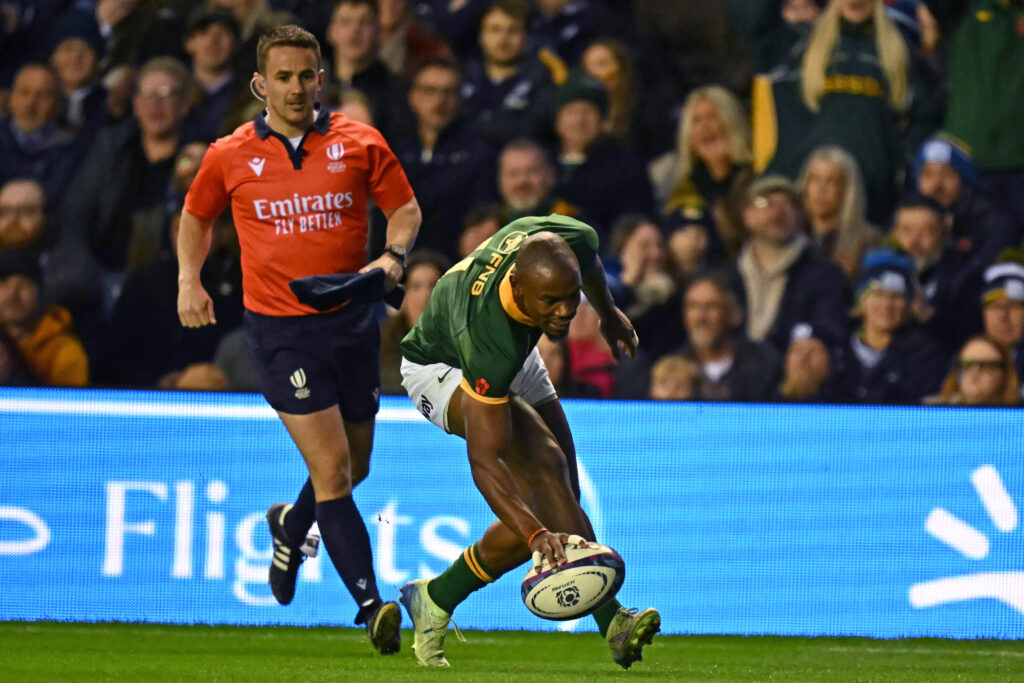 Vainqueurs du Rugby Championship cet été, l’Afrique du Sud, championne du monde en titre, a débuté sa tournée en Europe par une victoire toute en sérénité contre l’Ecosse 32 à 15, dimanche à Murrayfield.Les Springboks, qui affronteront ensuite l’Angleterre puis le pays de Galles, ont pris le large en première période grâce à un doublé de leur ailier Makazole Mapimpi (4e, 35e), à chaque fois servi par une passe au pied milimétrée de l’ouvreur Handre Pollard.En tête à la pause 19-9 grâce à un troisième essai, signé du pilier Thomas Du Toit après une touche (30e), les Boks ont profité de vingt minutes de supériorité numérique après un carton rouge allégé infligé à Scott Cummings pour un déblayage dangereux.Ils ont ensuite fait le dos rond en deuxième période face à des Ecossais joueurs, avec Finn Russell à la baguette à l’ouverture.Mais seule la botte de Russell, auteur de cinq pénalités, a permis aux hommes du sélectionneur Gregor Townsend de coller au score, les vagues écossaises se heurtant à chaque fois à la féroce défense sud-africaine.Jamais fébriles même après le carton jaune infligé à Mapimpi (58e), les Boks se sont redonné de l’air avec deux pénalités de Pollard (65e, 74e), avant qu’un essai en force de Jasper Wiese (80e) derrière sa mêlée ne scelle la rencontre.Cette défaite est la neuvième de suite des Ecossais face aux Boks, dont le dernier revers face au XV du Chardon remonte à 2010.Les Ecossais affronteront le Portugal la semaine prochaine, avant de recevoir l’Australie, tombeuse samedi de l’Angleterre (42-37) dans un match à suspense.