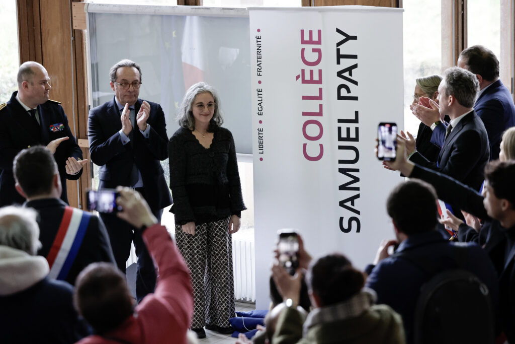 Le collège de Conflans-Saint-Honorine (Yvelines), où enseignait Samuel Paty, assassiné par un islamiste radical tchétchène, a officiellement pris son nom vendredi après-midi en présence notamment d’une de ses soeurs et de la ministre de l’Education nationale.Une plaque portant le nom de l’enseignant d’histoire-géographie assassiné en octobre 2020 a été dévoilée à l’intérieur de la cour de l’établissement, précédemment appelé collège du Bois d’Aulne, à cette occasion. Auparavant, dans le vaste hall au plafond géométrique où les collégiens se sont sagement installés avec leurs sacs à dos, la principale Marianne Viel, la ministre de l’Education nationale Elisabeth Borne et Gaëlle Paty se sont entre autre exprimées pour louer l’action éducative de Samuel Paty et appeler à faire vivre les “valeurs de la République”.Ce changement de nom “est le symbole d’une promesse que ni l’oubli, ni la peur, ni la violence ne l’emporteront”, a déclaré Elisabeth Borne devant un parterre de collégiens, d’enseignants, de personnels de l’Education nationale, d’élus et d’officiels. Une chorale de collégiens a ensuite interprété “Il changeait la vie” de Jean-Jacques Goldman. “Après le Bois d’Aulne, Samuel Paty, c’est donc le nom de la vie qui continue malgré la mort, au-delà de la mort”, a déclaré une enseignante, lisant un texte composé avec ses collègues. “C’est le nom de la transmission à la jeunesse, de l’espoir envers les générations futures, c’est désormais le nom de notre collège et nous l’écrirons sur son fronton, à côté des mots +Liberté, égalité et fraternité+”, a-t-elle conclu, émue.Le collège avait proposé en septembre ce changement de nom, une décision approuvée par le conseil municipal puis par le département.Samuel Paty, professeur âgé de 47 ans, a été poignardé puis décapité le 16 octobre 2020 par Abdoullakh Anzorov, un réfugié d’origine tchétchène.Le jeune homme de 18 ans, musulman radicalisé, lui reprochait d’avoir montré en classe des caricatures de Mahomet. Avant d’être tué par la police, il avait revendiqué son geste en se félicitant d’avoir “vengé le prophète”.Le maire de Conflans-Sainte-Honorine, Laurent Brosse, avait indiqué en octobre, après le vote du conseil municipal, avoir souhaité attendre que tous les collégiens ayant connu Samuel Paty aient quitté l’établissement avant de rebaptiser le collège, ce qui est le cas depuis fin juin 2024.”Je pense qu’aujourd’hui (…) il faut qu’on arrive à construire des choses concrètes pour les jeunes” et “que le nom de Samuel devienne le symbole d’autre chose qu’un drame”, a déclaré Gaëlle Paty à la presse à l’issue de l’inauguration.