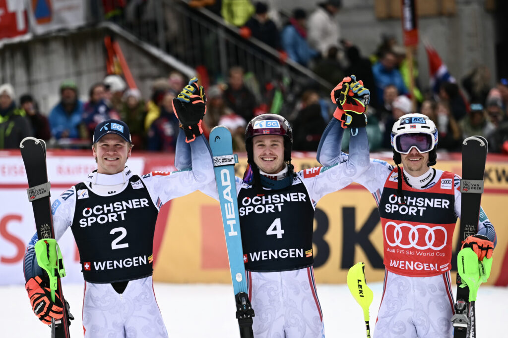Répondant à la démonstration des descendeurs suisses devant leur public, les Norvégiens ont réussi le triplé dimanche lors du slalom de Wengen, remporté par Atle Lie McGrath devant Timon Haugan et Henrik Kristoffersen.S’appuyant sur une première manche éblouissante, McGrath a réussi lors de la seconde à se dépêtrer de la neige ramollie et de quelques erreurs dans le mur final pour conserver 18/100e d’avance sur Haugan et 29/100e sur Kristoffersen.Le Norvégien de 24 ans a comme à son habitude pris tous les risques – il vient d’enchaîner trois podiums et deux éliminations – pour décrocher sa troisième victoire en Coupe du monde, près de trois ans après avoir remporté les slaloms de Flachau et Courchevel/Méribel en mars 2022.Les Suisses, archi-dominateurs en vitesse où ils ont remporté le super-G vendredi avant un doublé samedi en descente, se contentent cette fois des places d’honneur: Tanguy Nef, Loïc Meillard et Daniel Yule finissent 4e, 5e et 6e.Vainqueur samedi dernier du slalom d’Adelboden, dans une vallée voisine, le champion olympique Clément Noël termine cette fois 11e à 73/100e: sans faute majeure, le Français n’a “pas réussi à (s’)adapter” à la neige inhabituellement douce.- Kristoffersen garde le dossard rouge -Né dans le Vermont, fils d’un slalomeur américain comptant un podium sur le circuit mondial, McGrath incarne la nouvelle génération de la technique norvégienne, venue prêter main forte à un Kristoffersen longtemps seul à enchaîner les podiums.A 28 ans, Timon Haugan confirme lui son excellent début de saison, marqué par une victoire fin décembre dans le slalom d’Alta Badia, qui lui permet de figurer au 5e rang du classement général comme de celui de la spécialité, juste derrière McGrath.De loin le plus beau palmarès des slalomeurs en activité, avec 24 succès et 56 podiums dans la discipline sur les 31 courses remportées sur le circuit mondial, Henrik Kristoffersen démontre une nouvelle fois sa régularité hors normes.Jamais au-delà de la 6e place cet hiver entre les piquets serrés, victorieux mi-décembre à Val d’Isère, le triple détenteur du globe du slalom (2016, 2020, 2022) creuse l’écart en tête du classement de la spécialité.Le Norvégien de 30 ans, sept fois sur le podium final du gros globe depuis son éclosion précoce, reste deuxième du classement général et revient à 232 points du Suisse Marco Odermatt, vainqueur de la descente samedi mais qui ne dispute pas les slaloms.- Premier Top 10 pour Rassat -Côté français, Paco Rassat réussit à 26 ans son premier Top 10 grâce à une excellente seconde manche, qui l’a fait passer de la 19e à la 9e place, à 61/100e d’Atle Lie Mc Grath.”Forcément c’est un palier, un cap qui est franchi”, s’est réjoui le jeune Savoyard, qui avait déjà marqué ses premiers points sur le circuit mondial l’an dernier à Wengen (22e), avant d’enchaîner avec une 12e place à Kitzbühel.”C’est top, il a une progression constante, il commence à skier vraiment fort”, l’a félicité Clément Noël, pour qui “l’équipe est solide”: “on est tous en capacité d’aller chercher tout devant, c’est hyper encourageant pour le groupe”, a estimé le Vosgien.Toujours en quête de son premier podium après deux quatrièmes places cette saison, Steven Amiez finit lui 17e à 1 sec 03, après une série d’erreurs qui lui ont coûté onze rangs en seconde manche.Les slalomeurs se retrouveront dimanche prochain à Kitzbühel, en Autriche.