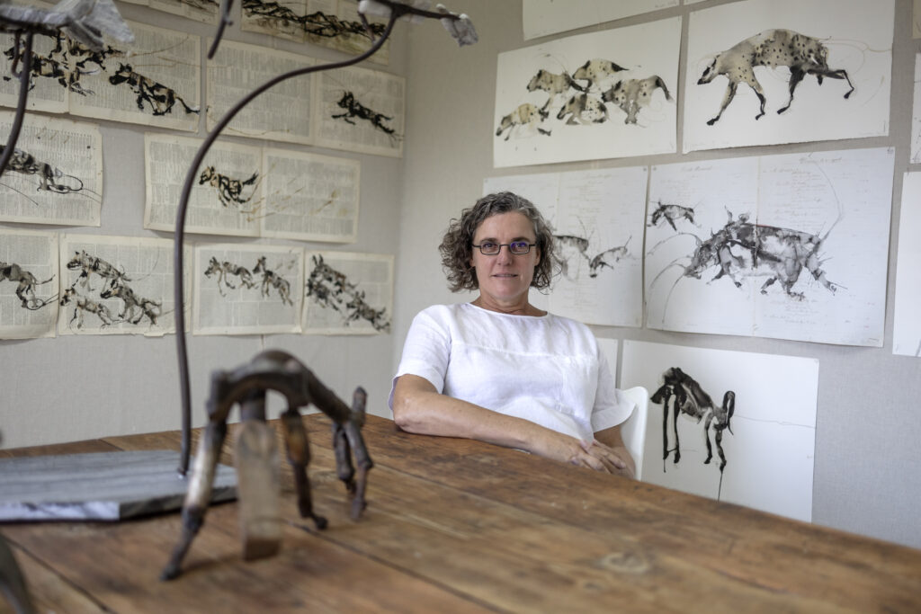 They are often disparaged as ugly, sly and cruel scavengers but for South African artist Hannelie Coetzee, hyenas are symbols of female power and the normalisation of queerness.The walls of her studio in the university district of downtown Johannesburg are covered in drawings in ink and rooibos tea of the sloped-back carnivores, her heroines of the bush.With cute ears but a frightening jaw, the animal is also represented in sculptures Coetzee fashions from scavenged materials.”I am very curious about hyenas from an ecofeminist perspective,” said the artist, whose work has been exhibited internationally.”They’re the underdog, misrepresented,” she told AFP. “They have been Disney-fied, made into creatures they are not.”Coetzee, 53, identifies in the animal a “celebration of the matriarch” in packs that are led by an authoritarian female and where other females dominate, for example in the sharing of food.She has spent hours observing the creatures in South Africa’s Kruger National Park, noting the “pseudo-phallus” genitalia of the females that to an average tourist gives them the appearance of males.”I would sketch with windows open so I could smell them,” said the artist, who also has a science degree. “I had rooibos tea in the car so I used that,” she said. “Wind blew, splashes started,” giving movement to the silhouettes on paper.- ‘Eco-queer’-Coetzee grew up in a small town close to nature in the largely conservative Free State province. She was born into a white family that was “on the wrong side of apartheid”, conservative and homophobic.”I spent years and years to unlearn so many things,” she told AFP. Also known for large murals in central Johannesburg and ecological installations such as public urinals watering plants, the artist moved to drawing during the Covid-19 lockdown. Her fascination with hyenas is part of a wider project of “eco-queer” art that focuses on queer-like behaviour in nature, which she says can also be observed in neck-jousting male giraffes, foxes and baboons.She focuses on the “mutual bowing, pair bonding, passionate embraces, dances, courting, mating, kisses in mid-air” of animals, her website reads. “I am making a selection of queer creatures for this body of work to share how observing them, scientifically, contributes to the normalisation of non-heteronormative sexualities from natures perspective,” it says.Humans have been made to believe that all animal behaviour is dictated by reproduction only, but “it’s much broader than that”, she told AFP.In the image of the animal kingdom, “we can be comfortable with queerness. It’s not such an odd thing anymore,” said Coetzee, who is married to a woman.It is “a frightening time for otherness”, she said, referring to developments under the administration of President Donald Trump in the United States, where she will be presenting a solo exhibition in Washington in May.”I am celebrating and normalising otherness, by telling stories, showing it is not so weird,” she said.