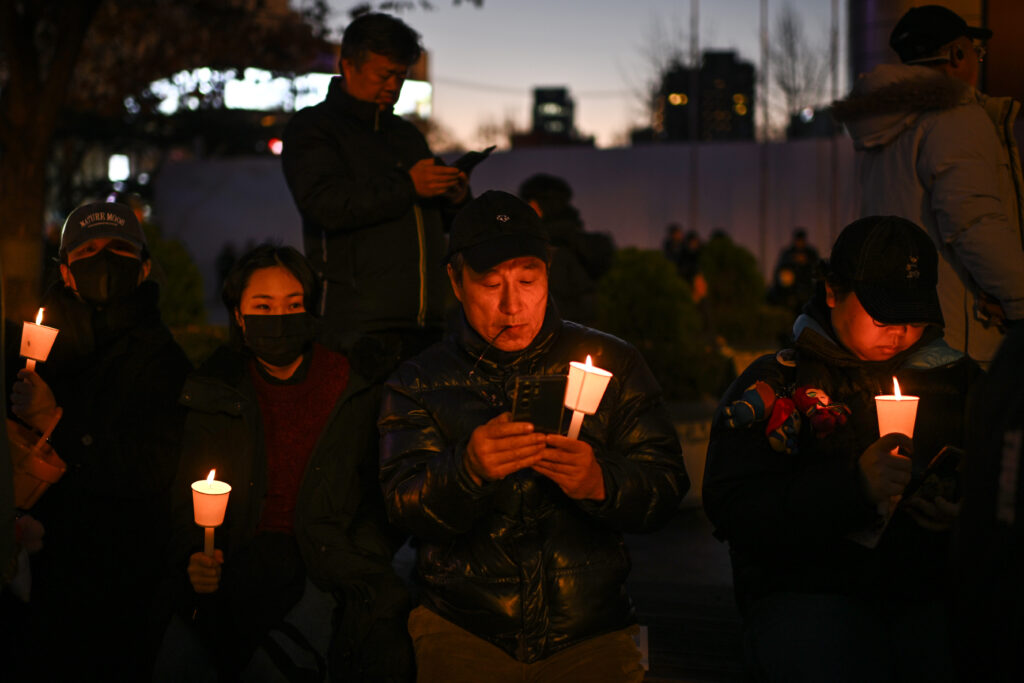 South Koreans took to the streets Wednesday for a day of rage laser-focused on President Yoon Seok Yeol, whose failed attempt at imposing martial law sparked anger and dismay in the vibrant democracy.The streets of Seoul teemed with protesters and police throughout the day as labour unions called a general strike and the opposition demanded Yoon step down and face charges of insurrection.Outside the National Assembly, where just hours earlier lawmakers voted to block Yoon’s martial law declaration, the crowd was united in their wrath against the conservative former prosecutor.”It was a self-coup, intended to protect himself and his wife,” one man shouted — a reference to the myriad scandals that have engulfed the first lady since Yoon’s tenure began in 2022.With few signs of fatigue from a sleepless night in which they feared Yoon was attempting to reverse decades of democratic progress, the crowd waved multicoloured signs and sang South Korea’s national anthem.Opposition politician Cho Kuk accused Yoon of having “attempted a coup through treason, military rebellion, and violations of constitutional and legal provisions”.And former presidential candidate Lee Jae-myung — who livestreamed his late night vault over a fence to get into the parliament — hailed “citizens who risked their lives, ready to face bullets” to defy the martial law declaration.He said the president had lost all ability to make “normal and reasonable judgment”.Another opposition official described Yoon as “abnormal”.”Abnormal president, with the abnormal presidential wife, tried to protect the abnormal power,” said Kim Min-seok, a senior Democratic Party official.Opposition lawmakers followed up the event by submitting a motion to impeach Yoon, which requires the support of two-thirds of the parliament and at least six Constitutional Court judges.The motion could be put to a vote by Friday.- ‘The president is crazy’ -Protests that erupted across Seoul also featured many younger faces who said the experience had awoken them to the fragility of the country’s hard-won democracy — reminiscent of the 2016 protests that brought down former President Park Geun-hye.”We have to defend it,” Shin So-yeon, a woman in her 20s, told AFP. “There is no other option.”Others expressed shock that the country — ruled for decades by a series of authoritarian regimes — had come so close to turning back the clock on almost 40 years of democracy.”It was like something out of a history textbook,” Park Su-hyung, 39, said.”Our democracy will be trampled if we keep Yoon in office a moment longer.” At a gathering in Seoul’s central square later Wednesday, protesters handed out hot drinks and candles as they readied for another long night.Demonstrators later marched on the National Assembly, determined to keep up the pressure until Yoon steps down.Thousands of people gathered at either end of the protest march, chanting and calling for Yoon to resign.Choi Moon-jung, 55, told AFP she “had to be here tonight.””The president is crazy.”