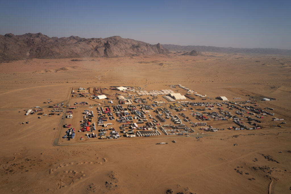 Un camp retranché de 3.500 personnes, six avions, onze hélicoptères, 100 camions, 70 bus… Derrière les images pittoresques du rallye Dakar dans la nature sauvage d’Arabie saoudite se cache une gigantesque machine logistique, qui transbahute d’étape en étape une mini-ville dans le désert.Installé sous haute sécurité sur 25 hectares dans une plaine de sable de la région de Bisha (sud-ouest), le “bivouac” de départ du Dakar bat son plein en ces premiers jours de l’édition 2025 du plus célèbre et éprouvant des rallyes-raids.Nuit et jour, des groupes électrogènes pétaradent à côté de structures de bâches blanches vastes comme des hangars. Des camions viennent abreuver les citernes des quelque 200 toilettes et douches, d’autres répandent de l’eau sur les routes pour fixer la poussière soulevée par le ballet incessant de véhicules. Rugissant, les vents de sables fouettent la mer de petites tentes de camping “deux secondes”, dans lesquelles dorment la plupart des habitants de cette commune itinérante.Près de la tente de la cantine de 1.600 m2 se trouvent une salle de jeux d’arcade, des terrains de sport, deux boutiques, une scène avec écran géant… Tout un petit monde qui évolue en autarcie à l’écart des villes et qu’il faut transporter au fil des douze étapes.”La mission de base de la logistique c’est de mettre en place les hommes et les moyens pour que chaque service, client, concurrent, puisse opérer, vivre son événement dans les meilleures conditions possibles”, dit à l’AFP Guillaume Kleszcz, directeur logistique de l’organisation ASO.Sur chaque Dakar, les organisateurs doivent prévoir une dizaine de bivouacs comme celui-ci, qui suivent les coureurs au fil de leurs parcours à travers la péninsule arabique, où la compétition a planté sa tente depuis 2020. Presque chaque jour, une nouvelle mini-ville à créer ex nihilo, au milieu du sable et des cailloux.- En double -Pour chaque site, “on a environ une dizaine de jours de montage. On aplanit d’abord le sol, puis viennent s’installer les structures, la partie électrique…” égrène Arnaud Calestroupat, responsable logistique du Dakar.Dans la mesure du possible, les logisticiens jonglent avec les duplicatas d’éléments pour pouvoir prendre le plus d’avance possible dans le montage.Le centre de contrôle de la course existe par exemple en deux exemplaires. Celui utilisé au bivouac 1 ira directement au bivouac 3, celui du bivouac 2 sera dirigé en avance au bivouac 4, etc. De même la tente de restauration (100.000 repas sur toute la durée du rallye) existe en quatre exemplaires, qui s’intercaleront les uns les autres. Grâce à ces roulements, l’organisation possède ainsi près de deux bivouacs d’avance par rapport à la course.Chaque lieu obéit à la même structuration: “On met au centre la zone technique, qui est la zone de travail. En face on met la zone de vie, qui est accessible à tous, où tout le monde se rencontre et peut se réunir. Et autour de ces deux gros espaces vont figurer l’ensemble des paddocks”, les bases de vie des différentes écuries en lice, décrit Arnaud Calestroupat, 30 ans.Tout n’est cependant pas clonable, à commencer par les gens.A chaque changement de bivouac, ce sont ainsi 500 personnes (organisation, presse, équipes…) qui sont déménagées à l’aube par des avions spécialement affrétés pour pouvoir être au point d’arrivée, plusieurs centaines de kilomètres plus loin, avant même le départ de la course.Quant à la production télé, elle doit avoir bouclé son travail en début de soirée pour emballer le matériel et le transporter de nuit par camion au lieu suivant. Là, il est réinstallé dans la foulée afin d’être à nouveau opérationnel au moment du départ des voitures et motos le lendemain matin.Ce gigantisme requiert une armée de bras: sur les 3.500 personnes qu’accueille généralement un bivouac, l’organisation et les différents prestataires représentent près de 800 à 900 personnes.Mais tout cela ne sera pas vu à la télé.