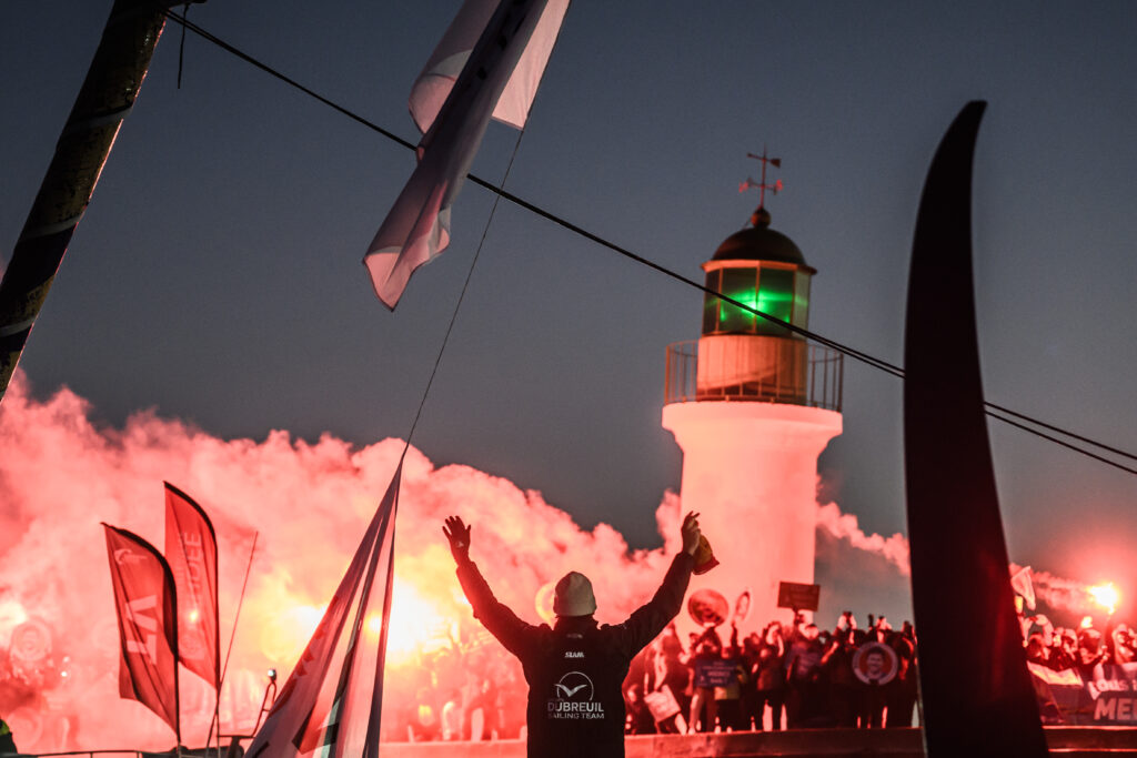Le Vendéen Sébastien Simon (Groupe Dubreuil) a pris vendredi aux Sables-d’Olonne (Vendée) la 3e place du Vendée Globe, célèbre course autour du monde en solitaire, sans escale et sans assistance remportée mardi par le Normand Charlie Dalin.Simon, 34 ans, a franchi la ligne d’arrivée à 1h27 (GMT+1), au terme de 67 j 12 h 25 min de course, environ trois jours après Dalin (Macif), et deux après le Varois Yoann Richomme (Paprec Arkea), complétant ainsi le podium.”C’était un accueil génial, extraordinaire, par un froid polaire (…) J’en garderai des souvenirs mémorables et j’ai hâte d’y être dans quatre ans”, a déclaré le Sablais, fatigué mais très souriant, peu après avoir terminé son premier Vendée Globe, en raison d’un abandon en 2020. Le marin, vainqueur de la Solitaire du Figaro en 2018, a rapidement été rejoint à bord par son équipe technique, sa compagne et son chien Chiffon, avant de longuement saluer le cortège de bateaux venus l’accueillir dans la baie en levant les bras.Premier Sablais de l’histoire à terminer sur le podium de la course, il a toutefois dû patienter cette nuit sur son voilier, en raison de la marée, pour s’offrir au lever du jour une remontée du chenal devant des milliers de personnes.- “Demain y’a vélo !” -“Demain y’a vélo !”, pouvait-on lire sur une imposante affiche accrochée le long des quais par ses coéquipiers du club de triathlon local – tous en maillots de bain malgré le froid, qui a beaucoup fait rire un navigateur très ému au moment de poser le pied sur le ponton.”Peut-être après demain”, a soufflé ce grand sportif. “J’ai hâte d’aller avec eux, mais ils risquent de me ridiculiser. J’ai déjà un ironman à préparer dans cinq mois car j’adore explorer mes limites”, a-t-il ajouté, amusé.Moins d’un an après s’être fracturé une vertèbre lors d’une course qualificative au Vendée Globe, il a été le seul avec Charlie Dalin à parvenir à accrocher une gigantesque dépression au nord des Kerguelen lors du tour du monde.Rattrapé ensuite par Yoann Richomme, le skipper de Groupe Dubreuil, devenu orphelin de son foil tribord dans l’océan Indien, s’est courageusement accroché à ce duo de tête, avant de se faire distancer peu à peu aux abords du Cap Horn.Richomme et Dalin sont tous les deux venus saluer le skipper au petit matin, le félicitant d’avoir mené avec brio son bateau en solitaire, alors qu’il avait était conçu pour la navigation en équipage sur l’Ocean Race 2023 (ex-Volvo Ocean Race) par les Américains d’11th Hour.- Objectif 2028 -“En terme d’ergonomie, il n’était pas pensé pour le solitaire, mais c’est un super bateau. Il avait déjà fait ses preuves alors que moi pas encore. J’espère les avoir fait aujourd’hui”, a simplement dit Simon.Son sponsor lui a annoncé mercredi vouloir continuer jusqu’au prochain Vendée Globe pour “le gagner un jour”, soit en lançant la construction d’un nouveau bateau, soit en achetant un autre voilier. Simon devient le troisième marin à boucler un tour du monde en moins de 70 jours sur le Vendée Globe, après Richomme et Dalin, qui avait pulvérisé le précédent temps de référence sur l’épreuve (Le Cléac’h, 74 jours, édition 2016/2017) arrivant mardi en 64 jours.Sur son parcours, le Vendéen a établi la plus grande distance jamais parcourue en 24 heures à bord d’un Imoca: 615 milles nautiques, soit 1.139,6 km.Parmi les 31 marins devant encore franchir la ligne d’arrivée, le trio Jérémie Beyou (Charal)/Sam Goodchild (Vulnérable)/Paul Meilhat (Biotherm), à la bagarre pour la 4e place, et qui se tient en quelques heures, est attendu en fin de semaine prochaine.