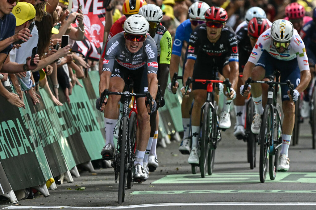 Le sprinteur belge Jasper Philipsen, porteur du maillot vert, a abandonné le Tour de France lundi après une lourde chute lors de la troisième étape entre Valenciennes et Dunkerque, et souffre selon son équipe d’une fracture de la clavicule.A l’approche du sprint intermédiaire, le coureur d’Alpecin, vainqueur de la première étape à Lille, a violemment tapé le sol après un écart du Français Bryan Coquard, lui-même déséquilibré par le Belge Lorenz Rex.Premier maillot jaune de cette édition 2025, il a été pris en charge par le service médical sur le bas-côté de la route avec le haut du maillot complètement arraché et les épaules râpées.Le Belge souffre d’une “fracture avec déplacement de la clavicule droite, une opération sera nécessaire”, a annoncé son équipe en début de soirée dans un court communiqué.Le sprinteur souffre également d’une fracture d’une côte, “peut-être deux”, souligne la formation Alpecin, indiquant qu’il serait transféré “dès que possible” à l’hôpital de Herentals, en Belgique, pour y être opéré.C’est un gros coup dur pour l’équipe Alpecin qui avait vécu deux premières journées de rêve avec la victoire et le maillot jaune pour Philipsen lors de la première étape, puis celle de Mathieu van der Poel dimanche lors à Boulogne-sur-Mer, là-aussi avec le maillot jaune à la clé.Philipsen, 27 ans, compte dix victoires au Tour de France, le deuxième meilleur total pour un coureur en activité derrière les 17 succès de Tadej Pogacar.Il avait remporté quatre étapes lors de l’édition 2023 et remporté haut la main le maillot vert du classement aux points qu’il visait cette année aussi.Sa chute est intervenue alors que cette troisième étape avait jusque-là été particulièrement calme après deux premières étapes mouvementées et émaillées de nombreuses chutes.