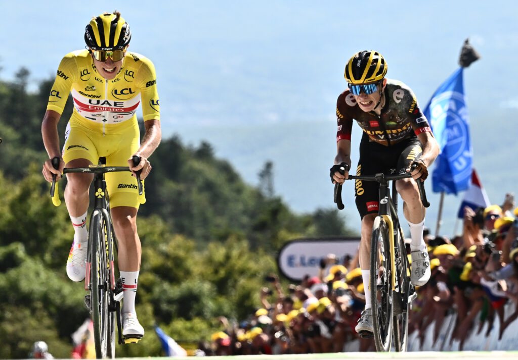 Dans le duel qui oppose Tadej Pogacar à Jonas Vingegaard depuis 2021, la première étape de haute montagne a souvent donné le ton du rapport de force entre les deux champions de juillet.Retour sur ces premières explications au sommet au moment d’aborder lundi le premier massif de l’édition 2025 (le Massif central), alors que le Slovène, maillot jaune sur le dos, a déjà pris un ascendant sur son rival danois (4e à 1 min 17 sec).. 2021: Oyonnax – Le Grand-Bornand (8e étape), AVANTAGE POGACARLauréat à la surprise générale de l’édition précédente, Tadej Pogacar, 22 ans à peine, a déjà frappé un grand coup lors du chrono à Laval quand le peloton aborde les premiers cols alpestres en direction du Grand-Bornand. Maillot blanc sur le dos, “Pogi” écrase tous ses rivaux, dont Primoz Roglic, le leader de la Jumbo-Visma, et s’envole au classement. Méconnu et dans l’ombre de Roglic, Vingegaard, auteur d’une belle troisième place à Laval, finit 10e à 3 min 20 sec de Pogacar au Grand-Bornand.Si le duel n’est pas encore en place, Vingegaard s’affirme le lendemain en terminant cette fois à 32 secondes seulement du Slovène à Tignes, tandis que Roglic a abandonné. Il est même le seul à faire plier Pogacar quelques jours plus tard dans les pentes du Ventoux. Il finit ce Tour à la 2e place à plus de 5 minutes, mais prend date.. 2022: Tomblaine – La Super Planche des belles filles (7e étape), MATCH NULDouble vainqueur sortant, Tadej Pogacar reste le grand favori et confirme son statut en gagnant à Longwy, où il reprend le maillot jaune à Wout Van Aert. Le Slovène fait coup double le lendemain à la Super Planche des belles filles mais Jonas Vingegaard n’a pas lâché cette fois en terminant dans le même temps, justifiant son statut d’adversaire N.1.Les deux feront à nouveau jeu égal entre Morzine et Genève (10e étape), avant que la Jumbo-Visma ne fasse craquer le maillot jaune dans le col du Granon (11e étape). Vingegaard gagne à 25 ans son premier Tour.. 2023: Pau – Laruns (5e étape), AVANTAGE VINGEGAARDDépart de Bilbao oblige, le duo a eu l’occasion de s’étalonner d’entrée dans les cols du Pays basque -où ils ont montré qu’ils étaient seuls au monde. Pogacar en sort avec une poignée de secondes d’avance. Mais dans la première grande étape pyrénéenne, le Slovène, qui a subi une préparation contrariée en raison d’une chute à Liège-Bastogne-Liège (fracture du poignet), va céder dès Marie Blanque, concédant plus d’une minute à Jonas Vingegaard à l’arrivée à Laruns.Le ton est donné, et “Pogi”, même s’il prend une revanche le lendemain à Cauterets-Cambasque, devra rendre les armes pour de bon dans les Alpes, après une démonstration du Danois dans le chrono de Combloux.. 2024: Pinerolo – Valloire (4e étape), AVANTAGE POGACARC’est cette fois Jonas Vingegaard, double vainqueur sortant, qui aborde la Grande Boucle dans un état de forme incertain à la suite d’une grave chute au Tour du Pays basque. Après une première explication dès la 2e étape, à Bologne, le col du Galibier se présente, isolé, deux jours plus tard lors de l’entrée en France. Le Danois y subit logiquement la loi du Slovène, concédant 37 secondes à l’arrivée. S’il est presque parvenu à s’accrocher dans le Galibier, il a surtout perdu du temps dans la descente.Au Lioran, une semaine plus tard, Vingegaard réalise l’exploit de recoller au Slovène et de l’emporter au sprint. Mais son retard est déjà de 1 minute 14, et la suite montrera qu’il manque d’essence, en finissant à nouveau à plus de cinq minutes de Pogacar sur les Champs-Élysées.
