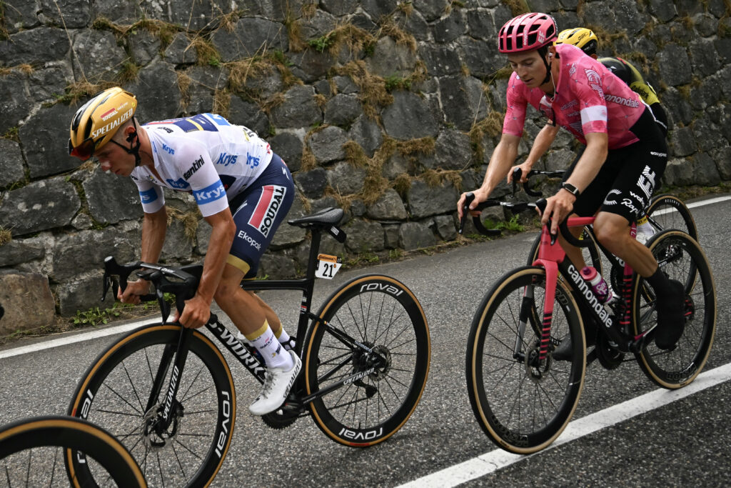 Le Belge Remco Evenepoel, maillot blanc et troisième du classement général du Tour de France, a abandonné samedi lors de la 14e étape alors qu’il était dans l’ascension du col du Tourmalet, première difficulté du jour.Le leader de la formation Soudal Quick-Step (25 ans), sur le podium final de la Grande Boucle l’an dernier, avait déjà été en difficulté lors des deux premières étapes pyrénéennes, incapable de suivre le rythme des deux favoris au général, Tadej Pogacar et Jonas Vingegaard.Le double champion olympique en titre a été lâché par le peloton dès les premières rampes du Tourmalet, col hors catégorie. Un temps dans un groupe à une quarantaine de secondes du peloton maillot jaune, Evenepoel a fini par sortir de la roue de son coéquipier Pascal Eenkhoorn avant de se laisser décrocher, passablement agacé par la présence d’une moto-caméra à ses côtés.Il a finalement mis pied à terre et est monté à bord d’une voiture de l’équipe à 9 km du sommet.Ce début d’étape entre Pau et Luchon-Superbagnères a aussi été marqué par l’abandon du Danois Mattias Skjelmose: le vainqueur de l’Amstel Gold Race a été victime d’une chute; le leader belge de l’équipe TotalEnergies Steff Cras, lâché dans la plaine en tout début d’étape, a lui aussi jeté l’éponge.Evenepoel, 25 ans, avait pourtant réussi un début de Tour de France encourageant. Vainqueur du contre-la-montre autour de Caen lors de la 5e étape, il avait abordé les Pyrénées maillot blanc sur le dos, avec un retard d’une minute sur Pogacar et 16 secondes d’avance sur Vingegaard.Mais dès la première étape dans le premier gros massif montagneux de ce Tour de France, jeudi, le Belge a été en difficulté, distancé dès le col du Soulor, limitant cependant la casse en terminant l’étape à son rythme à Hautacam.Le lendemain, il a semblé vidé de ses forces dans le contre-la-montre de 10,9km jusqu’à l’altiport de Peyragudes, et a même vu Jonas Vingegaard, parti deux minutes après lui, le dépasser à quelques mètres de la ligne d’arrivée.Occis après l’arrivée, il a peiné à trouver des explications à sa défaillance, finalement confirmée samedi.Evenepoel a connu une préparation hivernale tronquée par un grave accident, lorsqu’il avait heurté la portière d’une voiture de la Poste belge.