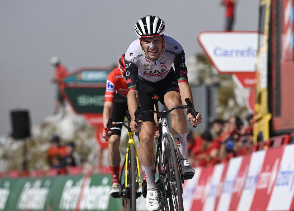 Le Portugais Joao Almeida (UAE) a remporté la 13e étape du Tour d’Espagne au sommet de l’Angliru où le Danois Jonas Vingegaard, 2e dans sa roue, a conservé le maillot rouge de leader au terme d’une journée à nouveau perturbée par une manifestation propalestinienne.Almeida, deuxième du classement général, s’est imposé devant le leader de l’équipe Visma-Lease a Bike tandis que l’Australien Jai Hindley a pris la troisième place. Le Portugais apporte ainsi un sixième succès en treize étapes à l’équipe UAE, confirmant qu’il est bien le principal concurrent de Vingegaard pour la victoire finale.”J’étais à la limite, je pense qu’on l’était tous les deux”, a dit Almeida. “J’étais prêt à ce qu’il m’attaque à tout moment, je pensais qu’il allait me dépasser avant l’arrivée, mais je connais bien la ligne depuis cette arrivée il y a deux ans. Je savais qu’il fallait que je sois premier au dernier virage, et comme il ne m’a pas passé c’était bon. L’Angliru est la montée la plus difficile que j’ai jamais faite, c’est vraiment fou.””Toute la journée a été très difficile. L’équipe a réalisé un travail extraordinaire pour rester au contact des attaquants. Joao mérite sa victoire. Je ne l’ai pas laissé gagner, j’étais simplement incapable de le passer dans les derniers virages”, a commenté de son côté Vingegaard.Grâce aux bonifications, le Portugais revient à 46 secondes de Vingegaard. Le duel pour la victoire finale se précise entre ces deux coureurs. L’actuel troisième du classement général, le Britannique Tom Pidcock, pointe désormais à plus de deux minutes de ses deux concurrents.- “Vingegaard est phénoménal” -“C’était trop dur… Ces pourcentages. L’Angliru est vraiment terrible. J’ai tenu un bon moment mais j’ai dû me rendre à l’évidence à mi-ascension; c’était trop pour moi”, a indiqué le coureur de l’équipe Q36.5, 7e de l’étape, au micro de l’organisation.L’Angliru est une ascension de 12 kilomètres à 7% de moyenne, avec une portion de 6 kilomètres à 13% et des passages à 22%. “L’enfer”, selon plusieurs coureurs.”Par moments, on fait vraiment du surplace”, a commenté l’Autrichien Felix Gall, 5e de l’étape et du général.Vingt-cinq hommes avaient pris les devants en début d’étape, le dernier d’entre eux, le Luxembourgeois Bob Jungels, a été avalé par le duo Almeida/Vingegaard dans les six derniers kilomètres.”Nous avons été un peu ralentis par une manifestation durant la course mais cela ne change rien, on savait que l’on serait repris par les meilleurs”, a commenté Nicolas Vinokourov. Le fils d’Alexandre Vinokourov figurait parmi les derniers rescapés de l’échappée qui ont été contraints de poser pied à terre une trentaine de secondes dans le bas de l’ascension finale, où des militants propalestiniens ont de nouveau perturbé la Vuelta, protestant contre la présence de la formation Israel Premier Tech.Sans commune mesure cependant avec l’étape de mercredi, autour de Bilbao, dont l’arrivée a été annulée, les temps étant pris à trois kilomètres de la ligne.Samedi, les coureurs seront à nouveau en haute montagne entre Avilés et La Farrapona avec près de 4.000 mètres de dénivelé positif sur 135 kilomètres et une nouvelle arrivée au sommet (16,9 km à 5,9%).Une occasion qu’Almeida voudra saisir pour revenir sur Vingegaard.”Bien sûr que je pense encore à gagner la Vuelta, a dit le leader de la formation UAE. Il y a encore beaucoup de temps pour rattraper Vingegaard mais il a l’air vraiment phénoménal, ça va être difficile, mais on ne va pas abandonner.”
