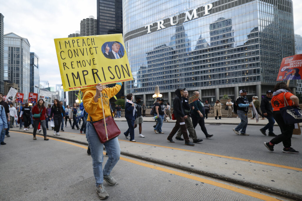 President Donald Trump threatened on Saturday to unleash his newly rebranded “Department of War” on Chicago, further heightening tensions over his push to deploy troops into Democratic-led US cities.The move seeks to replicate an operation in the US capital Washington, where Trump deployed National Guard troops and boosted numbers of federal agents, sparking a backlash and a fresh protest on Saturday that drew thousands.”Chicago about to find out why it’s called the Department of WAR,” Trump posted Saturday on his Truth Social account. The Democratic governor of Illinois, where Chicago is located, voiced outrage at Trump’s post.”The President of the United States is threatening to go to war with an American city. This is not a joke. This is not normal,” Governor JB Pritzker wrote in a post on X.”Illinois won’t be intimidated by a wannabe dictator,” he added.The post featured an apparent AI image of Trump and the quote: “I love the smell of deportations in the morning” — both references to the 1979 Vietnam War film “Apocalypse Now”.In the film, the line is spoken by Lt. Col. Bill Kilgore who says he loves the smell of “napalm” — not “deportations” — as the American military drops the highly flammable weapon on Vietnamese targets. The 79-year-old Republican has steadily ramped up threats against Chicago, since an early mention of it at the end of August.Anti-Trump protesters took to the streets of Chicago on Saturday, carrying signs that read “stop this fascist regime!” and “no Trump, no troops.” The protest route also went past Chicago’s Trump tower, and protesters made rude gestures at the president’s building as they walked past.On Saturday in the US capital, where National Guard troops have been deployed since Trump declared a “crime emergency” in August, a thousands-strong protest march wound through downtown with participants demanding an end to the “occupation.”Demonstrators in DC carried inverted US flags as they marched past the country’s national monuments, traditionally a symbol of a country facing existential peril.Trump’s troop and federal agent deployments — which first began in June in Los Angeles, followed by Washington — have prompted legal challenges and protests, with critics calling them an authoritarian show of force.Local officials in Los Angeles spoke out against the deployments and the violent tactics employed by ICE agents in Los Angeles, who often wore masks, drove in unmarked cars and chased down and snatched people from the streets without cause or warrants. In addition to Chicago, Trump has threatened to replicate the surges in Democratic-led Baltimore and New Orleans.On Friday, Trump signed an order changing the name of the Department of Defense to the Department of War, saying it sends “a message of victory” to the world.Pentagon chief Pete Hegseth cheered the move, saying the US will decisively exact violence to reach its aims, without apology.