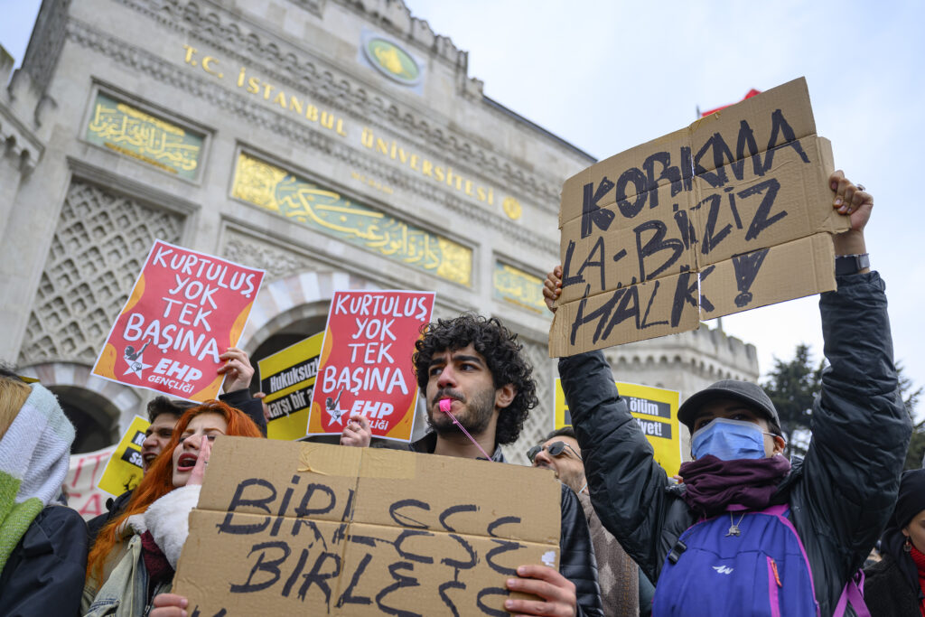 Le maire d’Istanbul Ekrem Imamoglu, figure de l’opposition turque, arrêté pour “corruption” et “terrorisme”, a appelé jeudi la nation à réagir et les juges à “ne pas se taire”, en accusant le président Recep Tayyip Erdogan de ne jamais rendre de comptes.”J’en appelle aux membres du pouvoir judiciaire (…) Vous devez agir et vous occuper de cette poignée de collègues qui ternissent notre système judiciaire, nous humilient sur la scène internationale et détruisent notre réputation”, a écrit l’édile dans un message posté sur X par ses avocats au lendemain de son placement en garde à vue.S’adressant sans le nommer au chef de l’Etat, M. Imamoglu lui a reproché “d’innombrables taches dont vous ne pouvez pas rendre compte, ni dans votre pays ni à l’étranger”.Le maire de la plus grande ville et capitale économique de la Turquie devait être intronisé dimanche candidat du Parti républicain du peuple (CHP, social-démocrate), première force d’opposition au parlement, à la présidentielle de 2028. Mais l’annulation mardi de son diplôme le prive de facto de toute possibilité de briguer la magistrature suprême.- “unis contre ce mal” -Aussi met-il en garde les Turcs: “les mêmes qui se sont emparés de mon diplôme s’attaqueront à vos biens, à votre honneur (…) En tant que nation, nous devons rester unis contre ce mal”, écrit-il.Avant même cet appel, ses partisans avaient appelé à se mobiliser jeudi pour dénoncer ce qu’ils qualifient de “coup d’Etat”.Des manifestations d’étudiants de plusieurs universités d’Istanbul se déroulaient malgré la pluie froide en plusieurs points de la ville depuis la mi-journée.La place Taksim et le parc adjacent de Gezi, lieux emblématiques de la contestation au coeur d’Istanbul, restaient barricadés jeudi pour prévenir tout rassemblement, par ailleurs interdits jusqu’à dimanche par le gouverneur de la métropole.De même, l’accès à plusieurs réseaux sociaux et messageries dont X et WhatsApp était toujours restreint jeudi à Istanbul, a constaté l’AFP. Et le ministre de l’Intérieur, Ali Yerlikaya, a annoncé l’arrestation de 37 internautes pour des “messages provocateurs” sur les réseaux sociaux.Outre M. Imamoglu, plus de 80 personnes ont été interpellées en même temps que lui et une vingtaine d’autres sont recherchées.Parmi elles, outre le maire, six personnes sont également accusées de “soutien à une organisation terroriste”, le Parti des travailleurs du Kurdistan (PKK), mouvement armé interdit qui s’est récemment engagé à déposer les armes.Selon les médias locaux, les interrogatoires des gardés à vue n’ont commencé que jeudi matin.Cette nouvelle vague d’arrestations touchant l’opposition a enfoncé la livre turque: elle s’échange jeudi autour de 38 livres pour un dollar et près de 41,5 livres pour un euro, des niveaux jamais atteints jusqu’à mercredi.La Banque centrale turque a indiqué dans un communiqué qu’elle puiserait le cas échéant dans ses réserves de change pour empêcher toute chute de la monnaie nationale, comme elle l’a fait mercredi selon des économistes.- “Tu n’es pas seul” -Le président du CHP, Özgür Özel, a appelé de nouveau à un rassemblement à 20H30 (17H30 GMT) devant le siège de la municipalité, a indiqué son parti à l’AFP.Mercredi soir, malgré le froid, plusieurs milliers de personnes ont répondu à son appel en scandant, entre autres, “Imamoglu, tu n’es pas seul!”.Le président du CHP a dénoncé un “coup d’Etat contre l’opposition” et fait huer le chef de l’Etat. “On a voulu annuler la volonté du peuple”, a-t-il clamé.”Il n’y a ni corruption, ni groupe terroriste, mais des bourreaux de la justice aux commandes”, a-t-il martelé au côté de l’épouse du maire, Dilek Imamoglu, estimant que “le seul crime d’Imamoglu est (…) d’avoir conquis le cœur des gens. Son seul crime est qu’il sera le prochain président!”.M. Imamoglu, qui a ravi en 2019 la municipalité d’Istanbul, est vu comme le principal rival du chef de l’Etat, Recep Tayyip Erdogan, qui s’est abstenu pour l’heure de tout commentaire.Les maires de plusieurs capitales et grandes villes européennes, ainsi que les ministères français et allemand des Affaires étrangères ont condamné son interpellation, mettant en garde contre ses conséquences sur la démocratie turque.