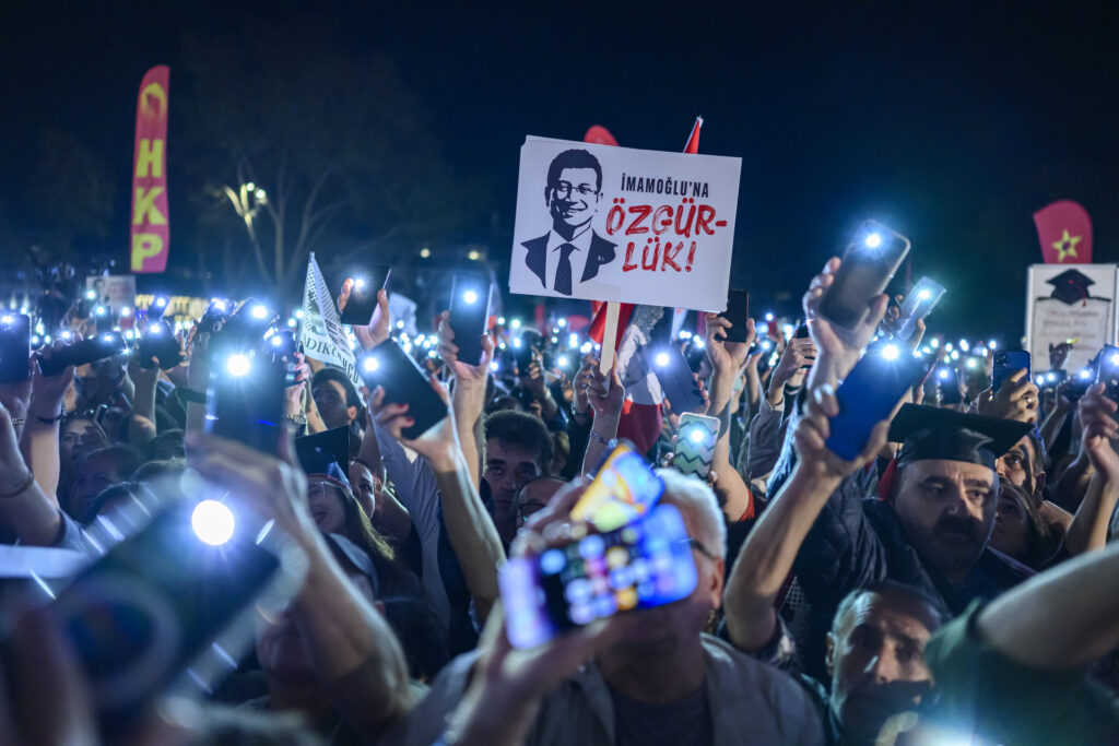L’opposition turque a rassemblé plusieurs dizaines de milliers de personnes mercredi soir à Istanbul, sept semaines après l’arrestation du maire de la ville, Ekrem Imamoglu, dont le sort continue d’agiter la Turquie, ont constaté des journalistes de l’AFP.”Notre lutte est une lutte pour la démocratie. Pour la liberté !”, a lancé le chef du Parti républicain du peuple (CHP, social-démocrate), Özgür Özel, qui tente de maintenir la vaste mobilisation déclenchée par l’arrestation le 19 mars de M. Imamoglu.Les manifestations en soutien au maire emprisonné d’Istanbul, principal rival du président turc Recep Tayyip Erdogan, ont perdu en intensité au fil des semaines, après avoir essaimé dans le pays et avoir rassemblé des dizaines de milliers de personnes chaque soir à Istanbul aux premiers jours de la contestation, inédite depuis 2013.”Hé Erdogan (…) Tu partiras comme tu es venu”, a clamé M. Özel, chef de la principale force d’opposition, devant le grand portail de l’université d’Istanbul qui avait annulé le diplôme de M. Imamoglu le 18 mars, à la veille de son arrestation, l’empêchant de facto d’être candidat à l’élection présidentielle de 2028, malgré l’investiture de son parti.”Nous sommes venus ici aujourd’hui pour récupérer (son) diplôme”, a poursuivi M. Özel, juché sur un autocar face à une foule dense, exhortant une nouvelle fois le président Erdogan à convoquer des élections anticipées.Selon M. Özel, une pétition du CHP demandant la libération de M. Imamoglu – incarcéré pour “corruption”, ce qu’il nie – et la tenue d’élections dans les plus brefs délais a récolté 14,8 millions de signatures à travers le pays.
