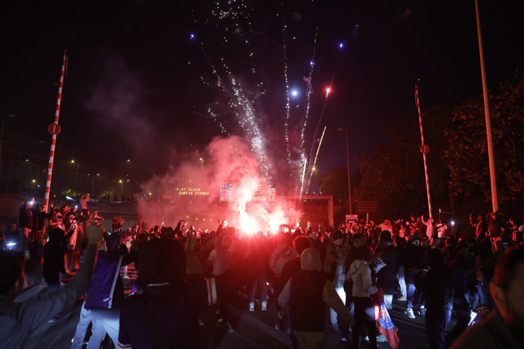 Au moins 45 personnes ont été interpellées après des incidents dans la nuit de mercredi à jeudi lors des célébrations de la qualification du PSG en finale de la Ligue des champions, en marge desquelles trois personnes ont été blessées, dont un mineur grièvement, a appris l’AFP auprès de la préfecture de police de Paris et du parquet.Trois personnes ont été blessées peu après minuit jeudi après que le conducteur d’un véhicule les a percutées dans des circonstances indéterminées près des Champs-Elysées, alors que les supporters du PSG fêtaient la victoire de leur équipe face à Arsenal. L’un des blessés, un mineur, a été transporté à l’hôpital dans la nuit avec un pronostic vital engagé. Il était toujours hospitalisé jeudi soir selon le parquet de Paris. Le conducteur du véhicule a lui été placé en garde à vue en fin d’après-midi, a précisé le parquet dans la soirée, confirmant une information du Parisien.Selon la préfecture de police, le véhicule avait été “immobilisé par la densité des supporters” dans une rue perpendiculaire à l’avenue des Champs-Elysées. – voiture incendiée -Après avoir percuté des piétons, le conducteur de ce véhicule Mercedes et un passager avaient “pris la fuite à pied abandonnant leur voiture à la colère de la foule, laquelle a été incendiée et entièrement détruite”, des images qui ont fait le tour des réseaux sociaux. “Les premières exploitations des images de vidéosurveillance permettent de constater que le véhicule conduit par le mis en cause était entouré d’un grand nombre de personnes au moment des faits avant que ce dernier donne un coup d’accélérateur”, dont les raisons n’étaient “pas encore déterminées” jeudi soir, a souligné le parquet.Une enquête a été ouverte pour violences avec arme ayant entrainé une incapacité totale de travail supérieure à huit jours, inférieure à huit jours, délit de fuite et non-assistance à personne en danger.Les scènes de liesse célébrant la victoire du PSG sur Arsenal ont été émaillées de plusieurs incidents, aux alentours des Champs-Elysées mais aussi du parc des Princes où s’étaient massés mercredi soir quelques milliers de supporters sans billets. Des véhicules et trois devantures de commerces ont été dégradés dans la soirée, selon la PP. De “nombreux projectiles” ont également été lancés en direction des forces de l’ordre par “plusieurs groupes hostiles” qui ont fini par être dispersés vers 3H00 du matin, a ajouté la préfecture de police.Au total, ce sont 44 gardes à vue qui ont été prises pour ces violences.Jeudi soir, le parquet de Paris a précisé que cinq de ces personnes ont vu leurs gardes à vue levées en vue d’une présentation à un magistrat pour d’éventuelles poursuites, tandis que huit autres ont vu leurs gardes à vue prolongées. Plus de 2.000 policiers, gendarmes et pompiers étaient mobilisés pour ce match, à la veille des cérémonies commémoratives du 8 mai 1945.