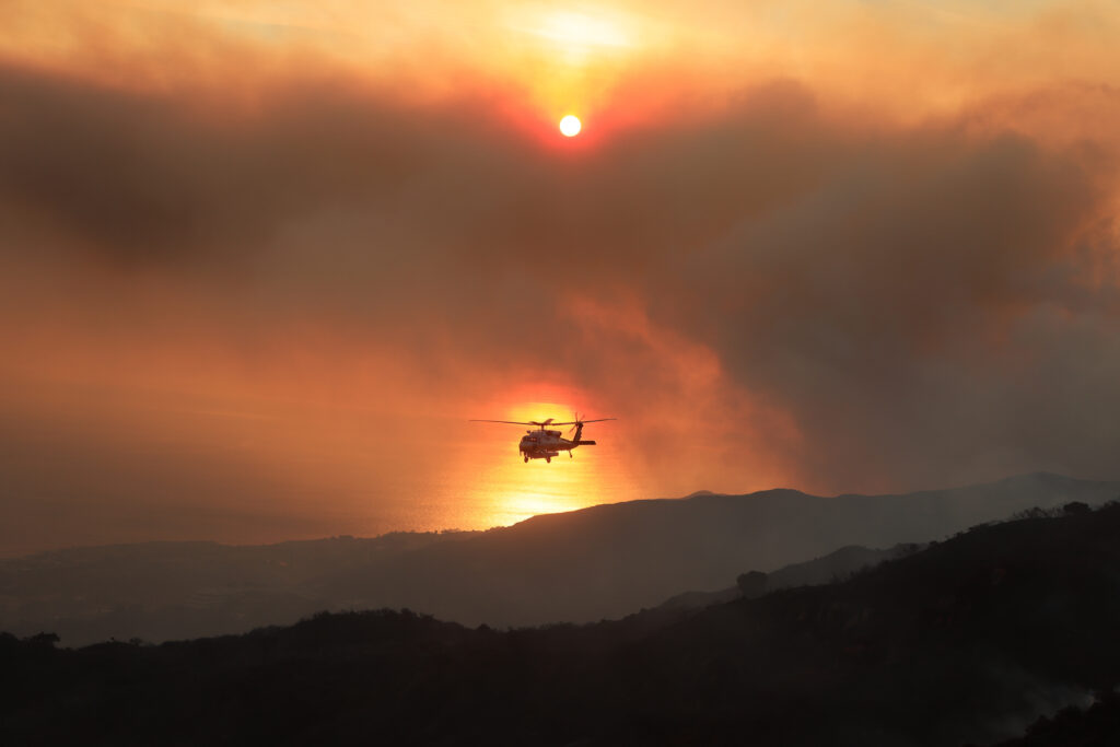 A ferocious fire tore through Malibu on Tuesday, destroying at least seven homes in one of California’s most desirable areas, and forcing thousands to evacuate.Multimillion-dollar properties, some owned by Hollywood celebrities, were in the path of the blaze, which exploded late Monday, fanned by powerful winds and tinder-dry brush.Firefighters were unable to get a foothold in the steep canyons that surround the tony enclave near Los Angeles, where towering flames were devouring hillsides, blanketing the air in choking smoke.”We were completely surrounded,” resident Alec Gellis told broadcaster KTLA.”It was like 11 pm. We hear people screaming. I walk outside — the sky is bright red.”Within 45 minutes, it’s coming down the hillside and then within an hour after that, we’re fully surrounded, houses burning down on one side. Ridge is burning on the other side, mountains all around us.”It got pretty scary at one point.”- Door-to-door response -Law enforcement officers have ordered thousands of people to leave their homes, with many more told to be ready to flee if conditions worsen.”There are approximately 20,000 affected citizens under evacuation orders and evacuation warnings,” said Captain Jennifer Seeto of Los Angeles County Sheriff.”Fire can be extremely unpredictable, and we highly encourage residents in the fire areas to be prepared. Have a plan and heed our evacuation warnings and orders.”Deputies had gone door-to-door urging people to get out as the flames began to spread on Monday night.Malibu Mayor Doug Stewart said the fire had been “traumatic,” but vowed that the city and its people would not be defeated.”That’s the way it is here in Malibu. It burns, it comes back, and we’re resilient and strong.”Actor Dick Van Dyke, who celebrates his 99th birthday on Friday, posted on Facebook that he and his wife had fled their Malibu home.”Arlene and I have safely evacuated with our animals except for (a cat that) escaped as we were leaving. We’re praying he’ll be OK and that our community… will survive these terrible fires,” he wrote.The city, which sits a short drive from Hollywood’s major studios, has been home to some of the biggest names in show business, with present and former residents including Lady Gaga, Leonardo DiCaprio, Jennifer Aniston and Cher.- Airdrops -By Tuesday evening, the so-called Franklin Fire had swelled to more than 2,800 acres (1,150 hectares) and was still raging out of control, fanned by powerful seasonal winds that have led to forecasters hoisting a “red flag warning.”Los Angeles County fire chief Anthony Marrone said 1,500 firefighters were continuing to battle the flames, with the help of aircraft that were dumping thousands of gallons (litres) of water and retardant from the air.Aerial reconnaissance showed an unconfirmed number of homes damaged and destroyed, he told reporters.”The entire fire area remains under threat,” he added.Tens of thousands of people across southern California had their electricity cut off. Utilities frequently de-energize lines ahead of windy days to reduce the fire risk from downed power lines.California Governor Gavin Newsom said the state had already secured a Fire Management Assistance Grant from the Federal Emergency Management Agency to assist with the response.”Fire officials and first responders are working relentlessly to protect lives and property from the Franklin Fire,” Newsom said in a statement. Wildfires are a feature of life in California and other parts of the US West, and are often exacerbated at this time of year by Santa Ana winds, which blow dry desert air from the interior.Human-caused climate change is known to increase the likelihood and the severity of fires, with evolving weather patterns leading to longer, hotter dry periods that desiccate vegetation.Experts say decades of policies stressing a zero-tolerance approach to wildfires have also left much of the countryside overstocked with flammable material, so when blazes erupt they tend to be faster, hotter and more destructive.