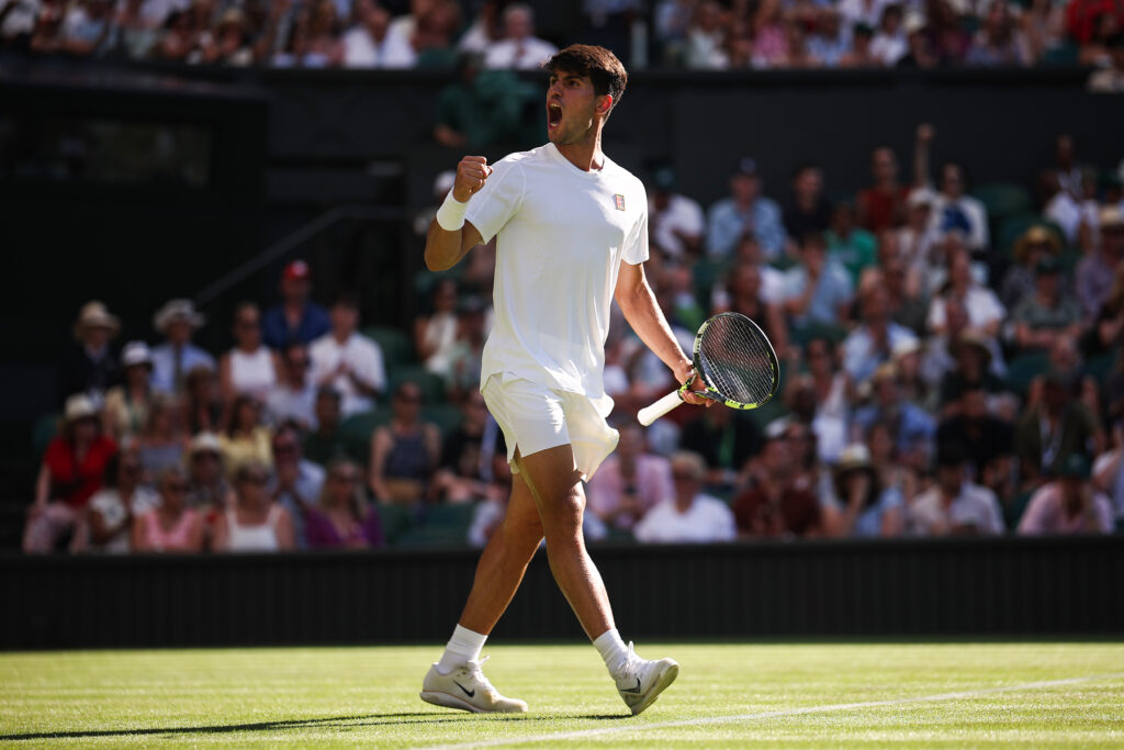 Le double tenant du titre Carlos Alcaraz a péniblement écarté en cinq sets le vétéran Fabio Fognini (38 ans), lundi à Wimbledon durant un premier tour fatal à Daniil Medvedev et Holger Rune, et maîtrisé pour la N.1 mondiale Aryna Sabalenka.L’Espagnol de 22 ans a sué à grosses gouttes, et pas uniquement à cause des plus de 30 degrés sévissant à Londres, lors d’une entrée en lice qui aurait dû ressembler à une formalité.Il lui a fallu plus de quatre heures et trente minutes pour faire plier son adversaire italien, modeste 138e mondial, en cinq manches 7-5, 6-7 (5-7), 7-5, 2-6, 6-1.”Peu importe la série de victoires que j’ai en ce moment, que je joue très bien sur le gazon et que je me sois très bien préparé la semaine dernière, Wimbledon est différent. J’ai senti que j’étais très nerveux au début”, a-t-il reconnu.Au deuxième tour, le numéro deux mondial affrontera le Britannique Oliver Tarvet, joueur amateur de 21 ans classé 733e à l’ATP et vainqueur lundi d’un autre joueur sorti des qualifications, le Suisse Leandro Riedi.C’est déjà fini en revanche pour deux membres du top 10 mondial, le Russe Daniil Medvedev (9e) et le Danois Holger Rune (8e), sortis respectivement par le Français Benjamin Bonzi et le Chilien Nicolas Jarry, 64e et 143e au classement ATP.Medvedev, double demi-finaliste sortant, n’avait jamais perdu au premier tour du Grand Chelem britannique, qu’il disputait pour la septième fois.Battu en quatre manches, il poursuit sa mauvaise série dans les tournois majeurs, après être sorti en janvier au deuxième tour de l’Open d’Australie, puis d’entrée sur la terre battue de Roland-Garros en mai.Le ciel était tout bleu à Londres et cela a souri aussi à Valentin Royer (113e), vainqueur de Stefanos Tsitsipas (26e) sur abandon après deux manches gagnées (6-3, 6-2).”Il s’agit d’une blessure persistante (au dos, ndlr) qui ne semble pas disparaître ou s’atténuer”, s’est inquiété le Grec, n’excluant pas une pause loin du circuit.Le duel de serveurs entre le Français Giovanni Mpetshi-Perricard et le N.5 mondial Taylor Fritz a lui été interrompu en raison du couvre-feu à Wimbledon, à deux manches partout. Idem pour la dernière affiche sur le Central entre Arthur Rinderknech et le N.3 Alexander Zverev, à un set chacun.- Jabeur abandonne -Dans le tableau féminin, la numéro un mondiale Aryna Sabalenka n’a connu aucune frayeur face à la Canadienne Carson Branstine (194e), novice dans le tableau final d’un Grand Chelem, qu’elle a battue 6-1, 7-5.La Bélarusse n’a eu besoin que d’une heure et 13 minutes pour éliminer son adversaire de 24 ans, sortie des qualifications aux dépens notamment de Loïs Boisson, demi-finaliste surprise de Roland-Garros.”J’essaie juste de jouer mon meilleur tennis à chaque fois, de me battre pour mes rêves. Je ne pense pas au fait d’être N.1 mondiale et une des favorites”, a-t-elle commenté.Elle poursuivra sa quête d’un premier titre sur gazon face à la Tchèque Marie Bouzkova.Le sort s’acharne en revanche sur Ons Jabeur, retombée au 59e rang après des blessures: l’ex-N.2 mondiale a abandonné d’entrée contre la Bulgare Viktoriya Tomova (111e), qui menait 7-6 (7/5), 2-0.”Je ne m’attendais pas à me sentir mal”, a expliqué la Tunisienne, double finaliste à Wimbledon (2022 et 2023), sans fournir d’explication sur son abandon. “Je me suis plutôt bien entraînée ces derniers jours, mais j’imagine que ce genre de choses arrive”.La N.8 mondiale Madison Keys a eu besoin de trois manches pour se défaire de la Roumaine Elena-Gabriela Ruse (58e), comme la finaliste sortante Jasmine Paolini face à la Lettone Anastasija Sevastova, ex-N.11 redescendue au 402e rang.La Tchèque Marketa Vondrousova, lauréate 2023, et la Japonaise Naomi Osaka ont été plus expéditives respectivement face à l’Américaine McCartney Kessler et l’Australienne Talia Gibson, battues en deux sets.Du côté des Françaises, c’est passé pour Diane Parry face à la Croate Petra Martic (4-6, 6-3, 6-2), mais pas pour Varvara Gracheva, éliminée au après un marathon éreintant de presque trois heures et demie face à la Bélarusse Aliaksandra Sasnovich (107e), victorieuse 6-4, 6-7, 7-6 (10/8).