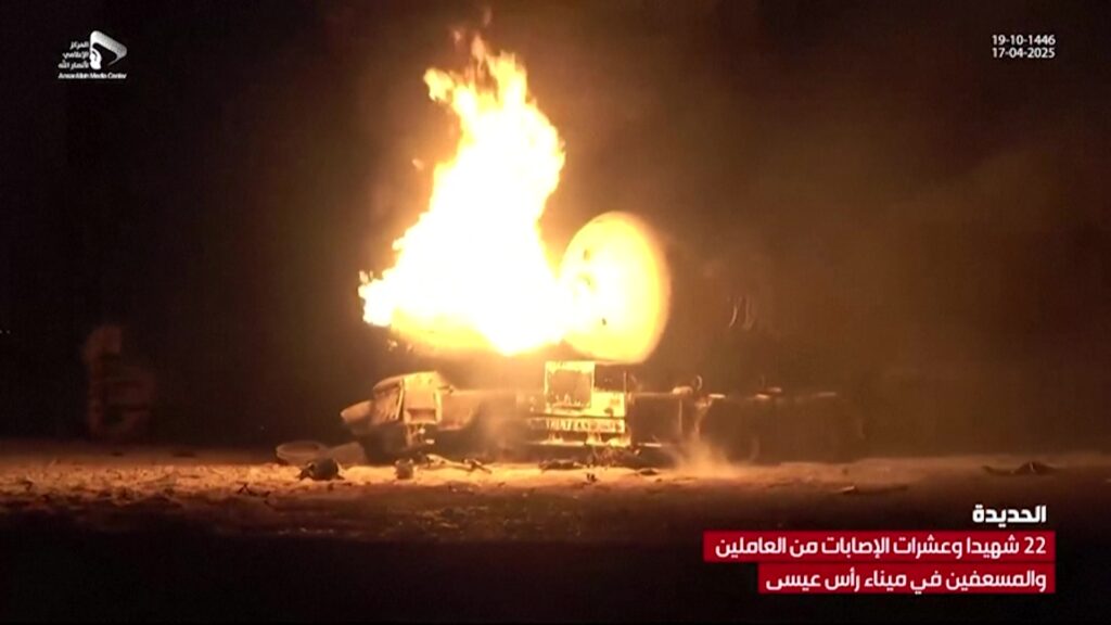 Des frappes américaines sur un port pétrolier stratégique au Yémen ont fait 74 morts, ont affirmé vendredi les rebelles houthis en revendiquant de nouvelles attaques contre des porte-avions américains et Israël. Les frappes américaines survenues jeudi soir sont les plus meurtrières depuis le début le 15 mars des bombardements américains ordonnés par le président Donald Trump contre les Houthis soutenus par l’Iran.L’armée américaine a annoncé avoir ciblé et détruit le port de Ras Issa dans la région de Hodeida (ouest), contrôlé par les Houthis.Les Etats-Unis ont voulu “éliminer cette source d’hydrocarbures pour les terroristes houthis et les priver du revenu illégal qui a financé leurs actions pour terroriser toute la région depuis plus de dix ans”, a dit le Commandement militaire américain pour le Moyen-Orient (Centcom).”Le bilan de l’attaque de l’ennemi américain contre les installations de Ras Issa est monté à 74 martyrs et 171 blessés”, a affirmé Anees Alasbahi, le porte-parole du ministère de la Santé des Houthis qui contrôlent de vastes pans du Yémen en guerre. Cela porte à 198 morts le nombre de personnes tuées dans les bombardements américains depuis mars, a-t-il précisé à l’AFP. L’administration Trump a annoncé le 15 mars une offensive militaire contre les Houthis, pour les contraindre à cesser de menacer les navires empruntant des routes maritimes cruciales pour le commerce international. L’attaque du port de Ras Issa a “causé des dégâts importants” qui “affecteront la navigation et l’approvisionnement en pétrole (…) exacerbant les souffrances du peuple yéménite”, a affirmé la chaîne des rebelles, Al-Massirah, en citant un communiqué des autorités portuaires.- “Mort à l’Amérique, Mort à Israël” -La chaîne a diffusé des images de nuit montrant des corps maculés de sang gisant au sol, ainsi que des secouristes transportant des blessés sur des civières, dont l’un présentait des brûlures aux bras et jambes.Des images ont aussi montré au moment des frappes une boule de feu éclairant la zone où se trouvent des navires, et d’épaisses volutes de fumée.Lors d’une manifestation massive organisée vendredi dans la capitale Sanaa, contrôlée par les rebelles, le porte-parole militaire des Houthis, Yahya Saree, a affirmé que les insurgés avaient tiré des missiles en direction d’Israël, où l’armée a annoncé le matin l’interception d’un missile en provenance du Yémen. Les Houthis ont également dit avoir visé deux porte-avions américains au large du Yémen, le Harry S. Truman et le Carl Vinson. “La poursuite de l’agression contre notre pays ne fera qu’augmenter les opérations” des Houthis, a déclaré M. Saree devant la foule venue protester contre les frappes américaines et témoigner son soutien aux Palestiniens de Gaza.Des rassemblements similaires ont eu lieu dans plusieurs régions sous le contrôle des Houthis, notamment à Saada (nord), où des centaines de personnes ont défilé aux cris de “Mort à l’Amérique, Mort à Israël”, selon des images diffusées par Al-Massirah.Les Houthis, avec le Hezbollah libanais et le Hamas palestinien notamment font partie de ce que l’Iran présente comme un “axe de la résistance” face à Israël, son ennemi.L’Iran a dénoncé comme “barbares” les frappes américaines au Yémen.- “Un signal à Téhéran” -Les Etats-Unis, qui ont désigné les Houthis comme organisation terroriste étrangère, ont imposé jeudi des sanctions contre une banque du Yémen et ses principaux dirigeants, en raison de son soutien “essentiel” aux Houthis.Après le début de la guerre à Gaza, déclenchée par une attaque du Hamas contre Israël le 7 octobre 2023, les Houthis ont mené des attaques de missiles contre Israël et des navires accusés de liens avec Israël en mer Rouge et dans le Golfe d’Aden, en affirmant agir en solidarité avec les Palestiniens.Les attaques dans cette zone maritime essentielle pour le commerce mondial, ont perturbé le trafic maritime international et poussé les Etats-Unis à mettre en place une coalition navale multinationale et à frapper des cibles rebelles au Yémen, parfois avec l’aide du Royaume-Uni.L’attaque sur le port de Ras Issa intervient avant des pourparlers entre les Etats-Unis et l’Iran samedi sur le nucléaire iranien.”Les actions militaires au Yémen envoient clairement un signal à Téhéran”, a affirmé à l’AFP l’analyste Mohammed Al-Basha, basé aux Etats-Unis. “Le message aujourd’hui est sans équivoque: les Etats-Unis visent non seulement les ressources militaires et le personnel des Houthis, mais aussi leur infrastructure économique.”